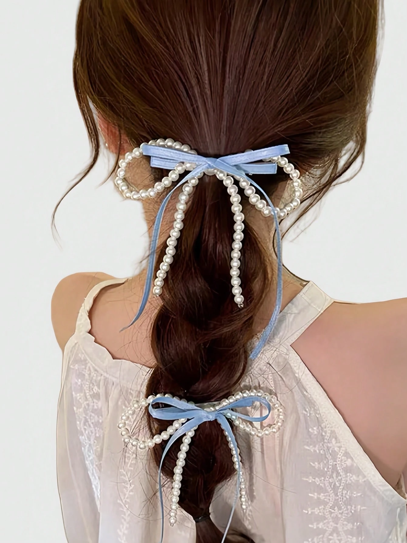 Fairycore Elegant Cute Butterfy Pearl Bow Ribbon Pearl Side Hair Clip, Sweet Girly Aesthetic Minimalist Design, New Arrival