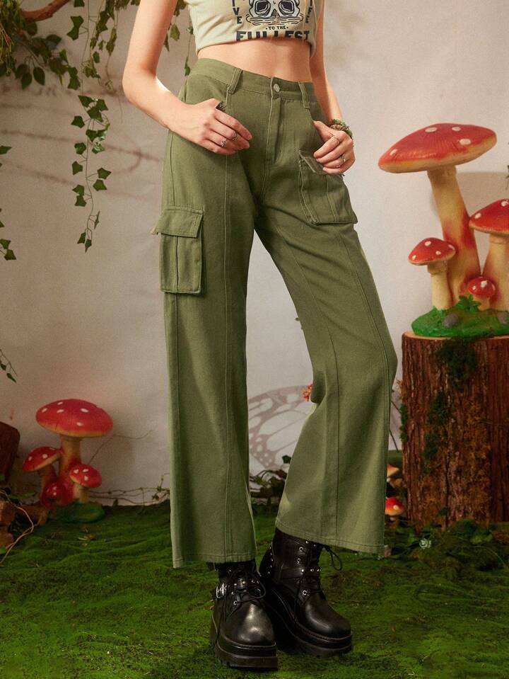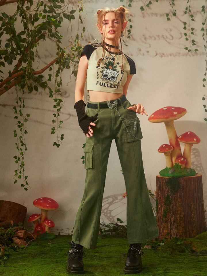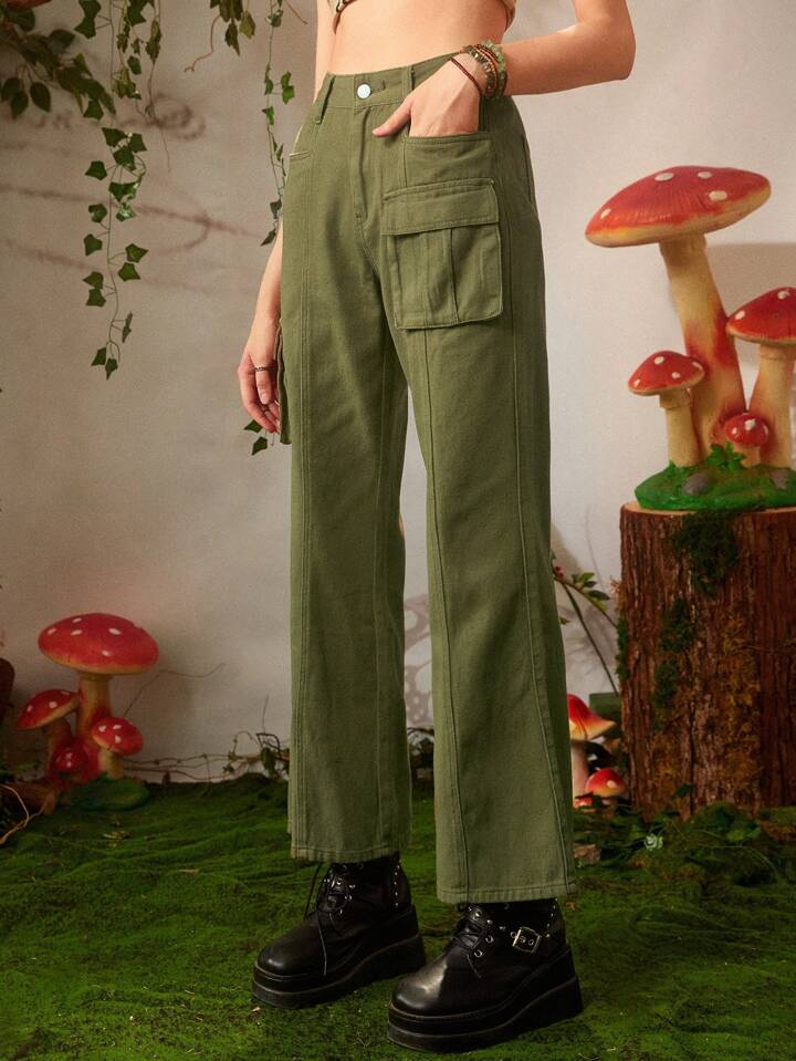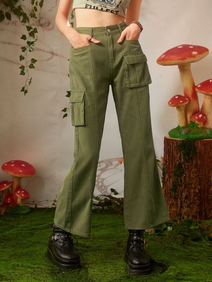 Fairycore Flap Pocket Flare Leg Jeans