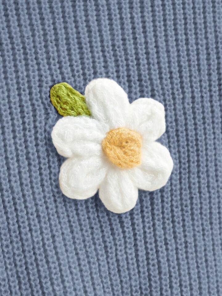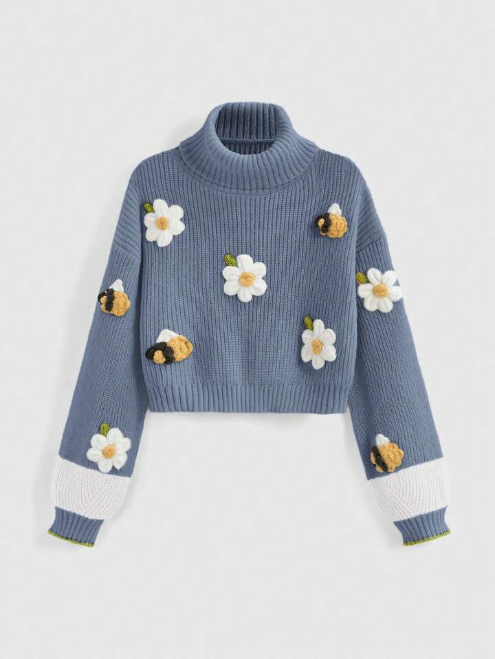 Fairycore Floral Applique Turtleneck Elegant Long Sleeve Pullover Sweater