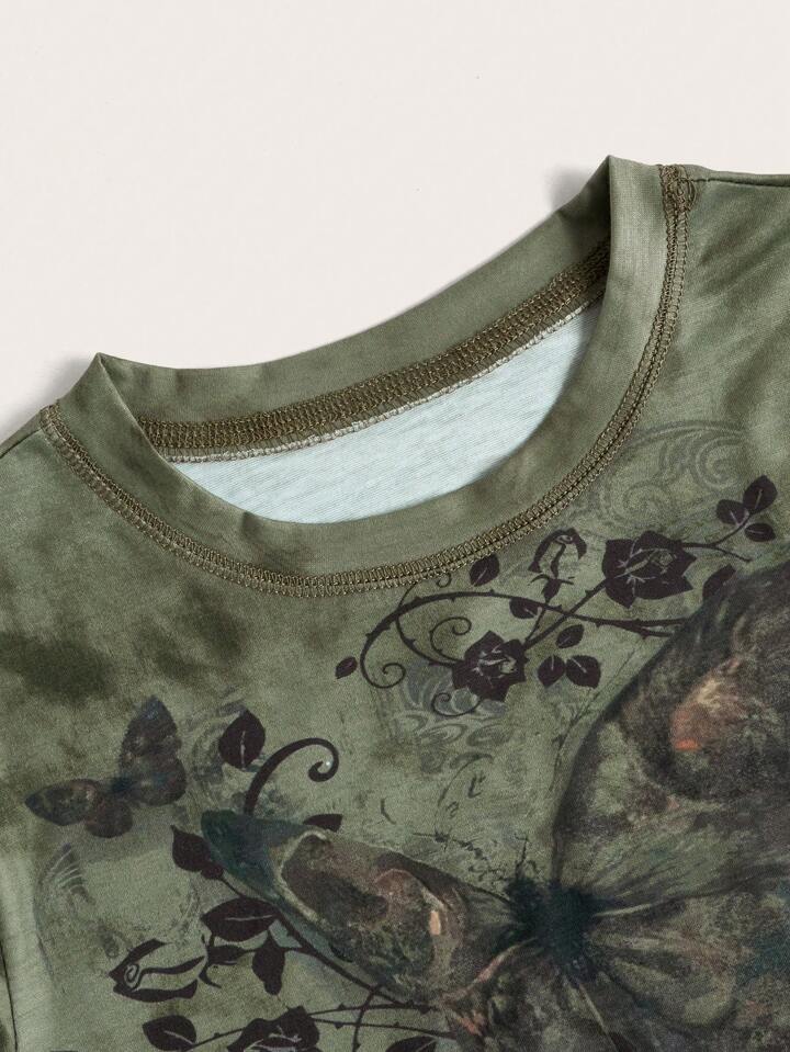 Fairycore Floral & Butterfly Graphic Tie Dye Crop Tee