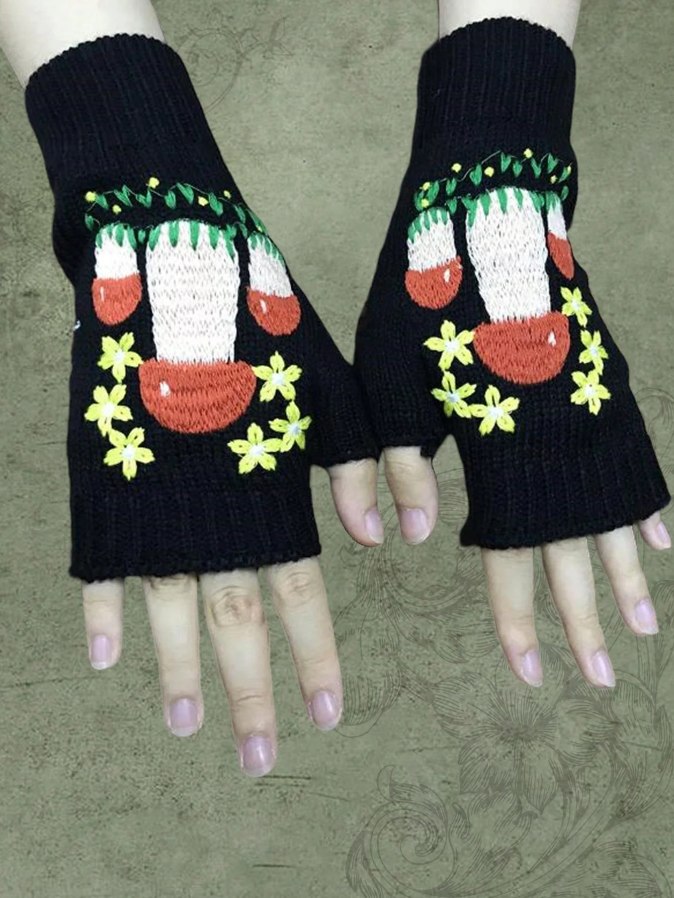 Fairycore Floral Embroidered Knit Fingerless Gloves