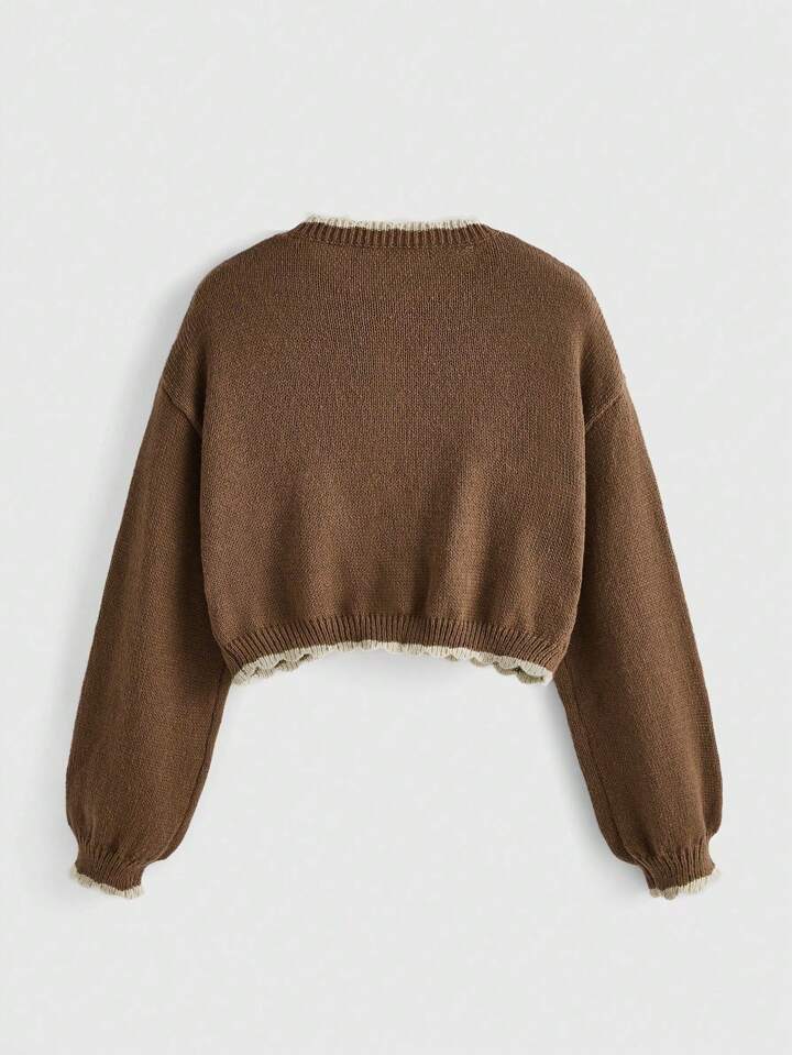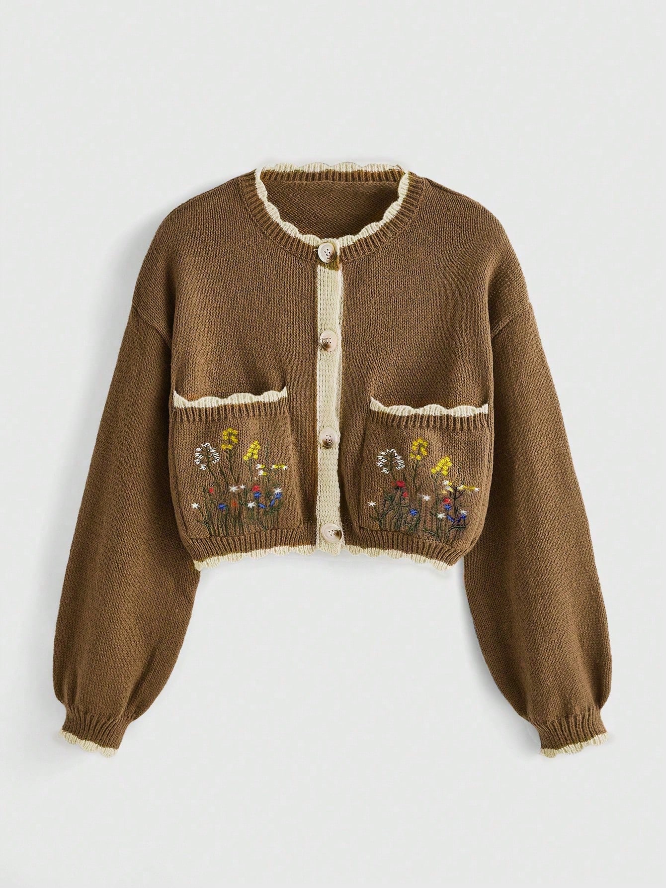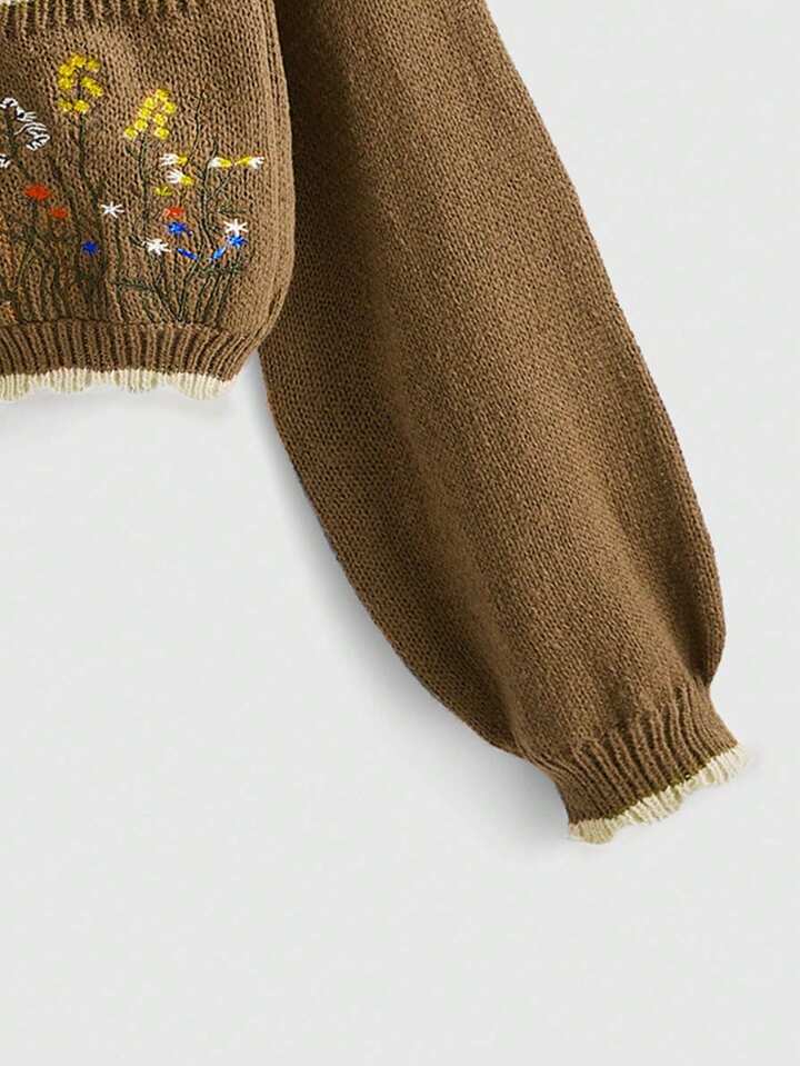 Fairycore Floral Embroidery Button Front Bishop Sleeve Cardigan