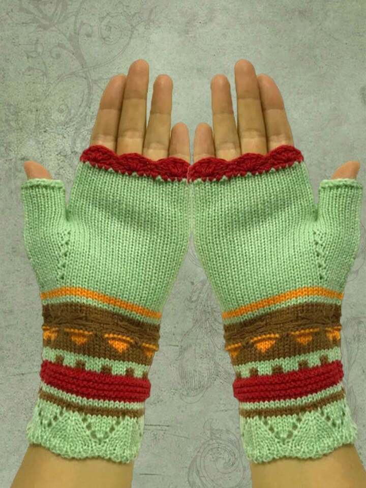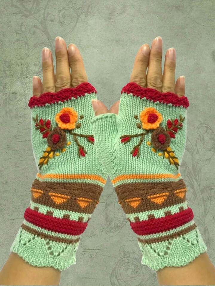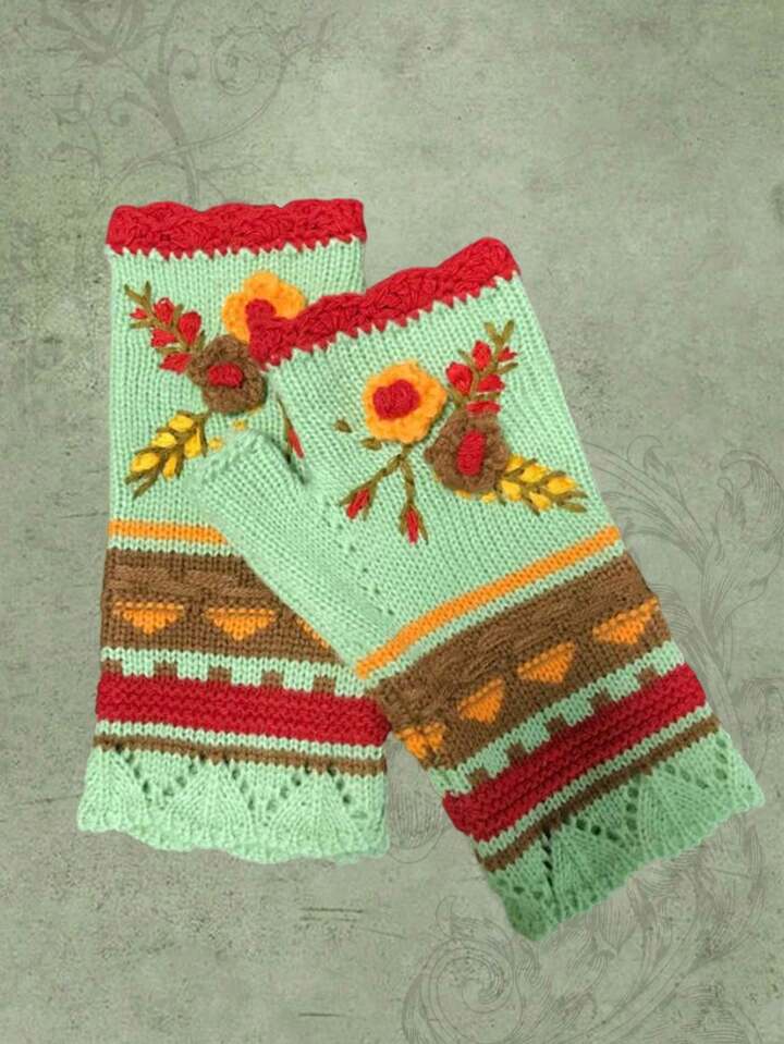 Fairycore Floral Embroidery Knit Fingerless Gloves