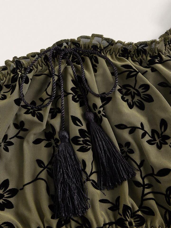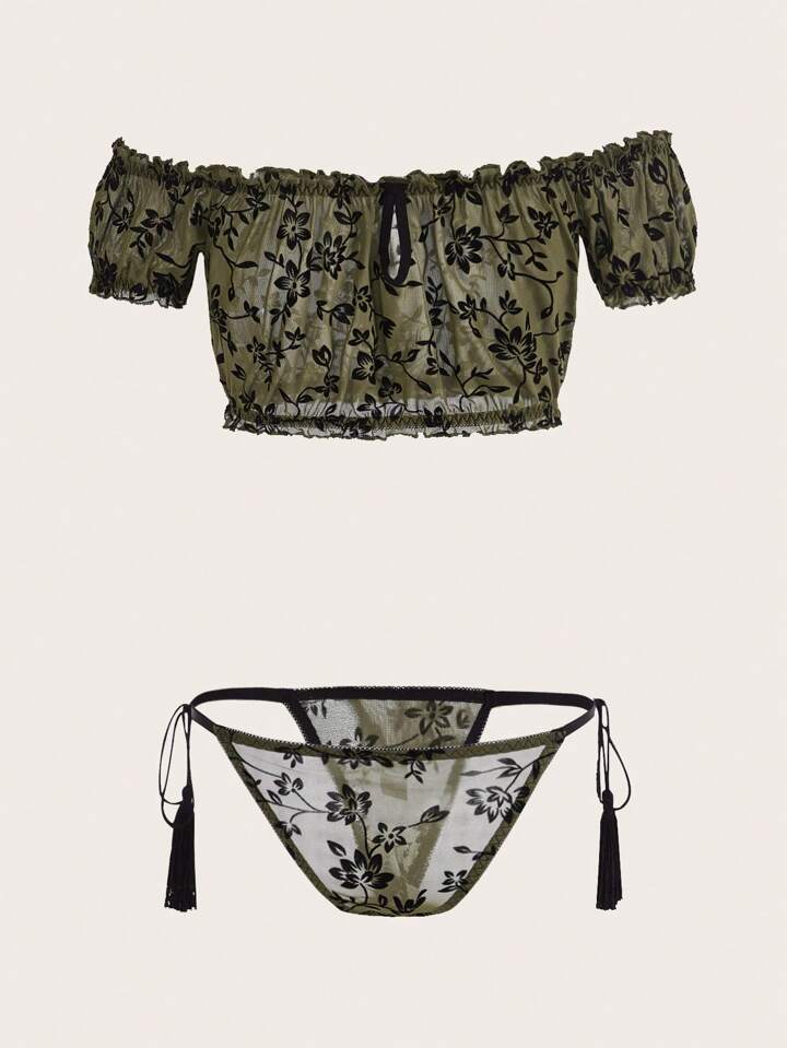 Fairycore Floral Print Frill Trim Lingerie Set