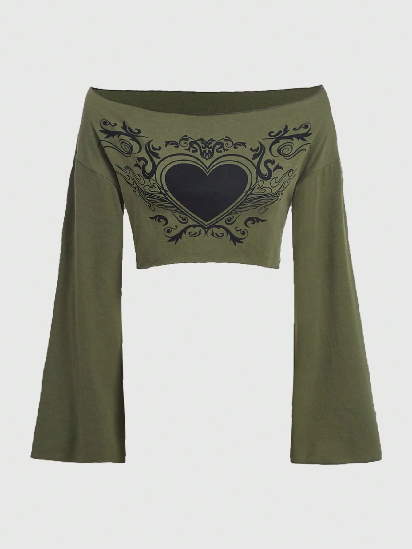 Fairycore Heart Print Crop Tee