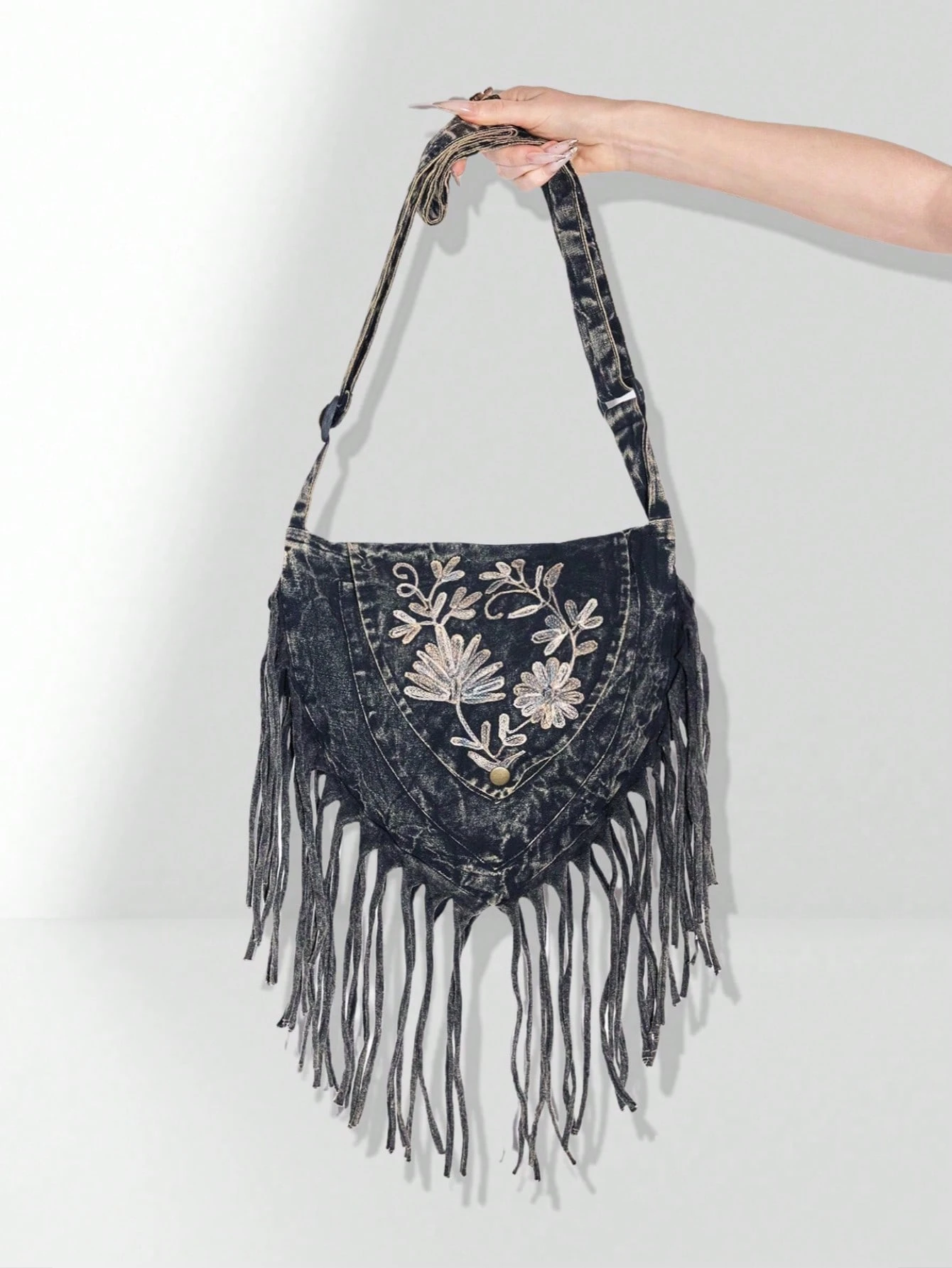 Fairycore Hippie Distressed Fringe Shoulder Bag, Music Festival Bohemian Travel Personalized Embroidered Crossbody Bag, Handmade Random Tie-Dye