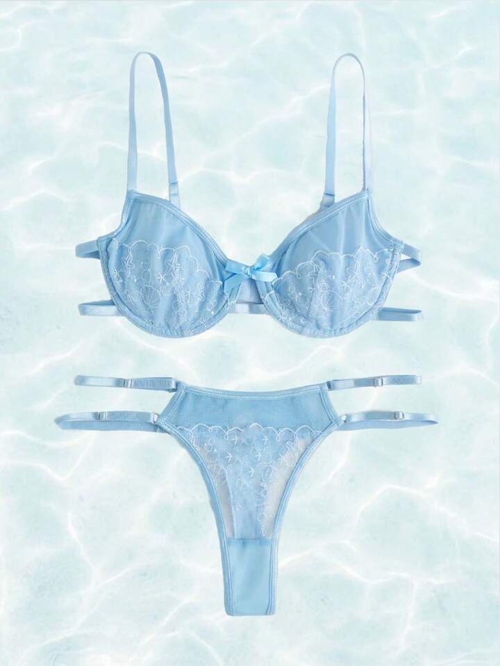 Fairycore Mermaid Contrast Lace Cut Out Underwire Lingerie Set