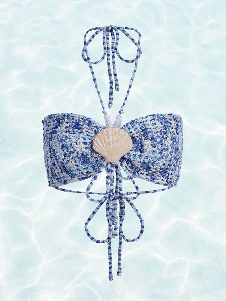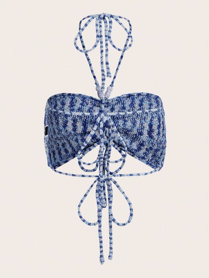 Fairycore Mermaid Marled Tie Backless Shell Decor Halter Knit Top