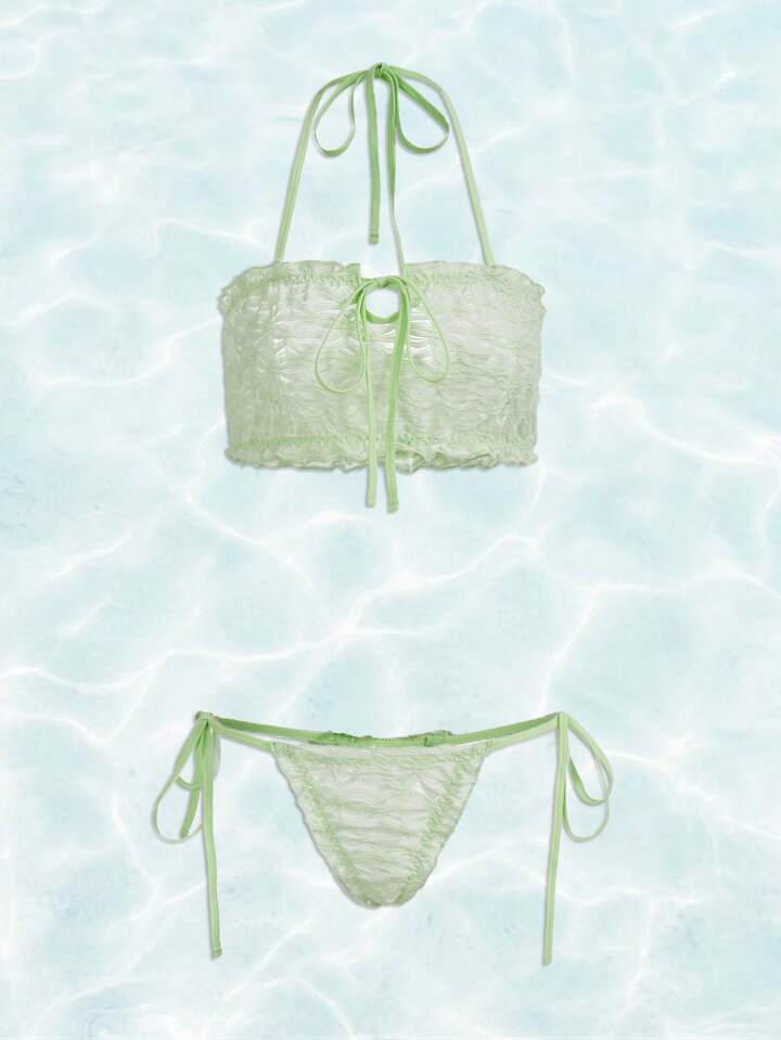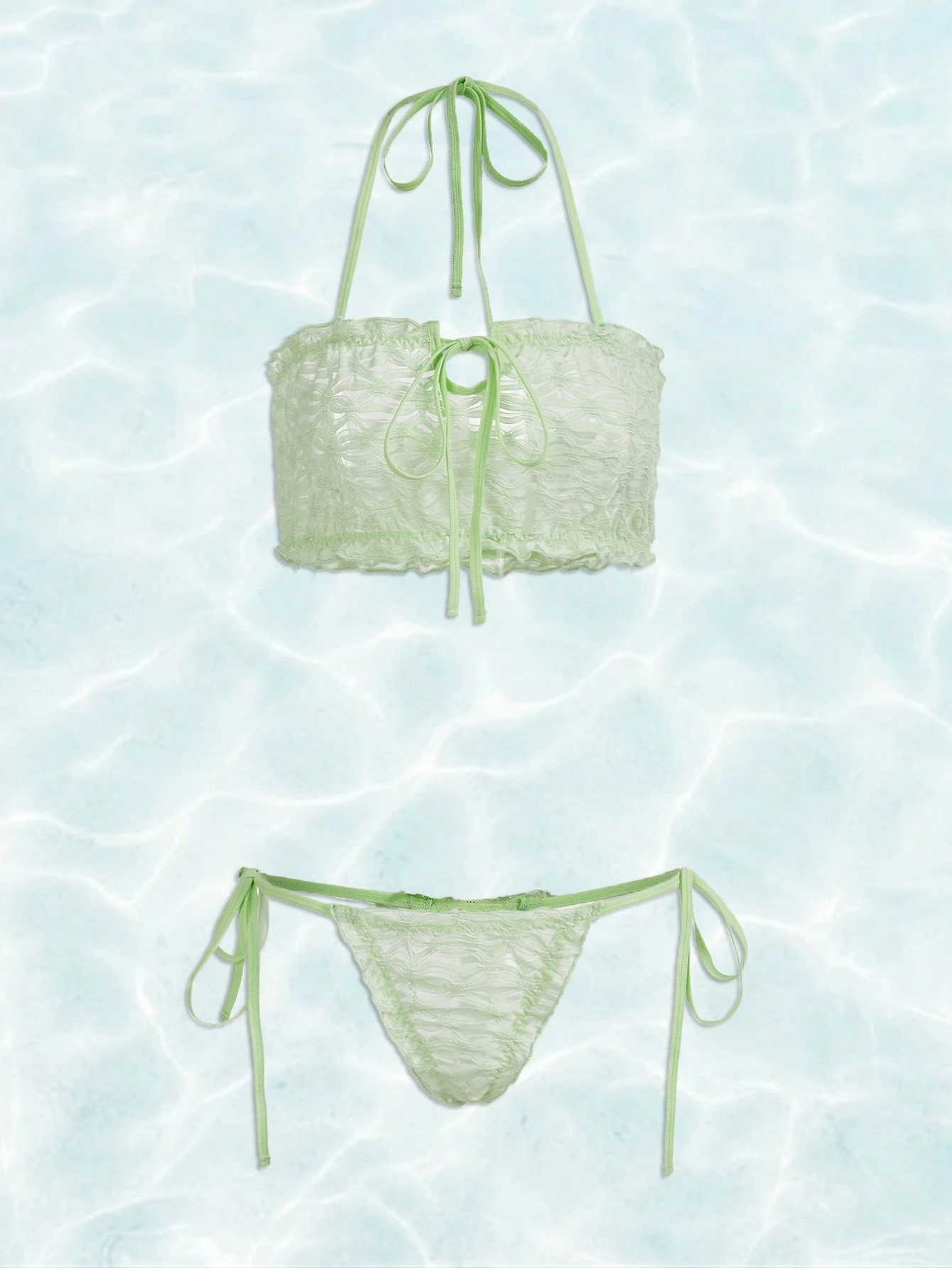 Fairycore Mermaid Textured Knot Halter Lingerie Set
