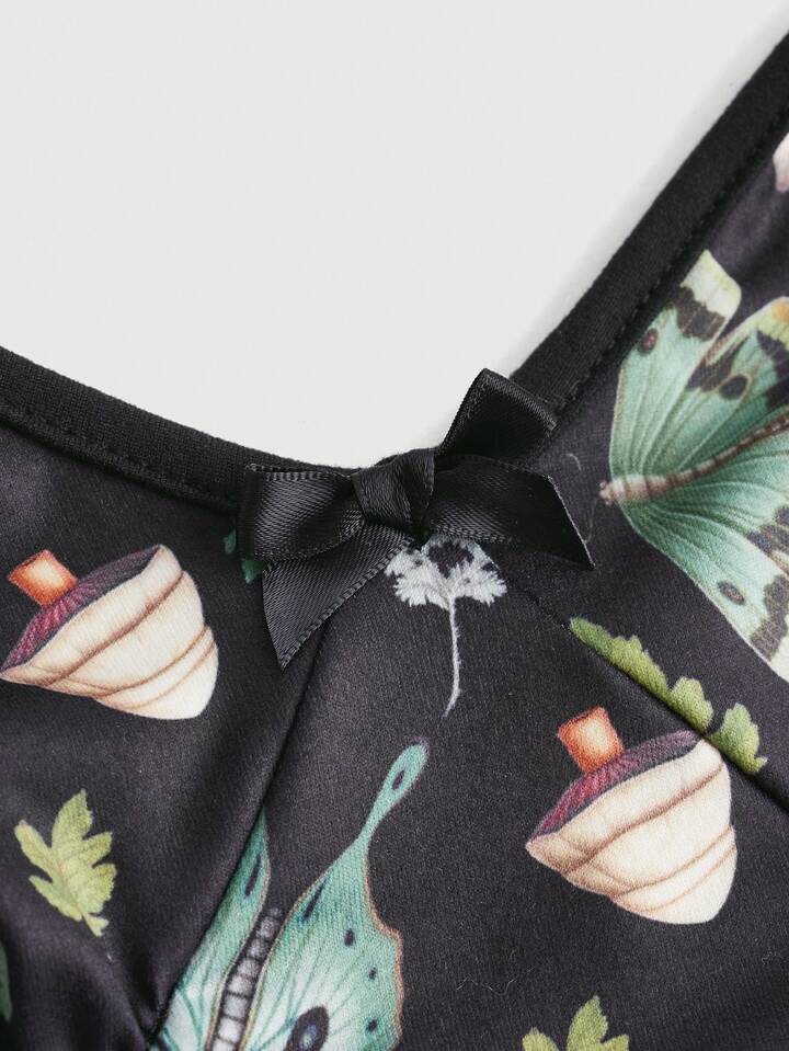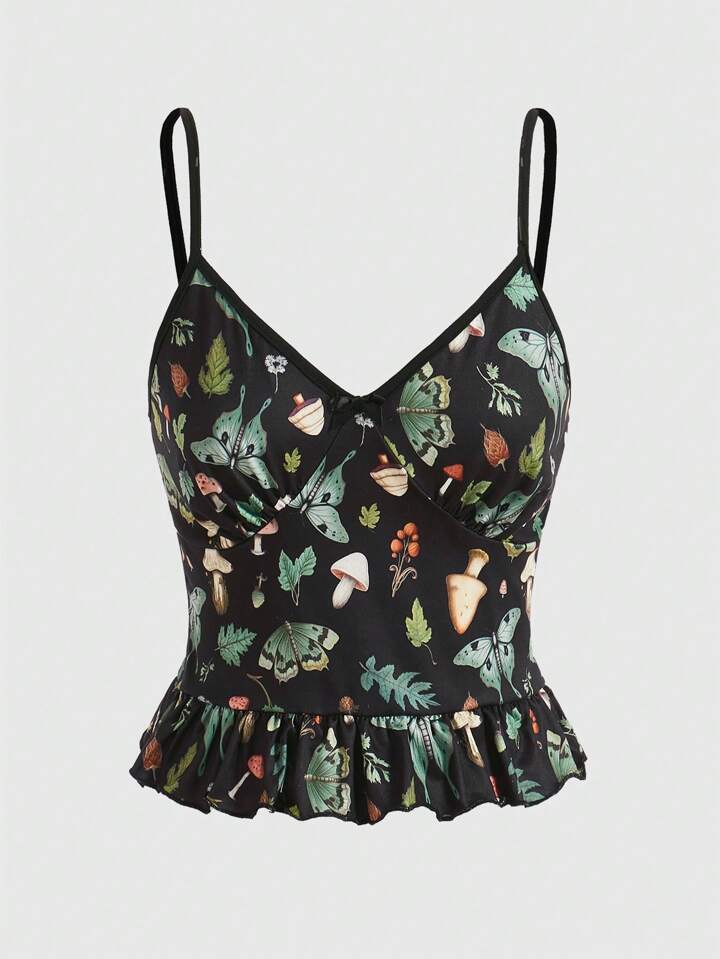 Fairycore Mushroom & Butterfly Print Ruffle Hem Cami Top