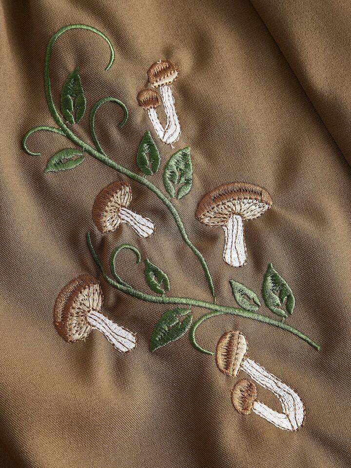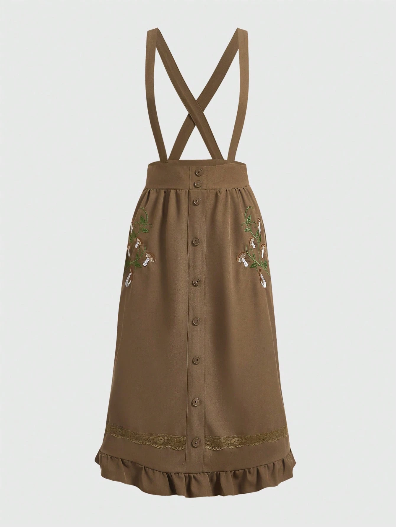 Fairycore Mushroom Embroidery Button Front Ruffle Hem Overall Skirt