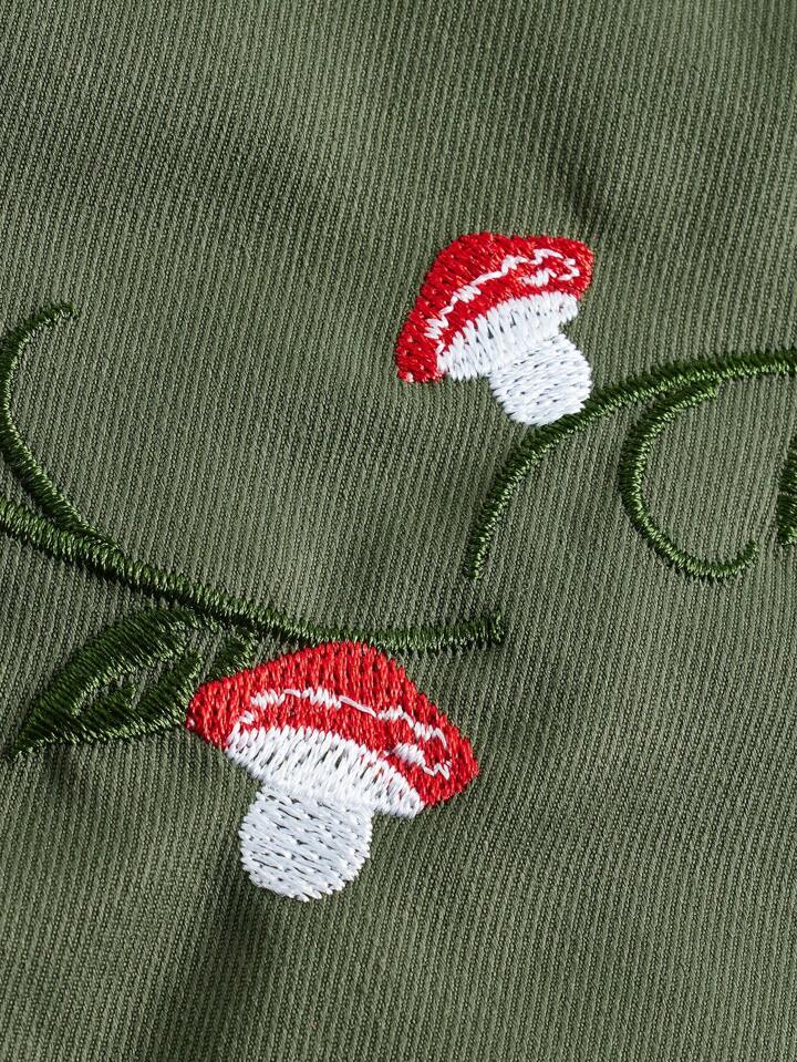 Fairycore Mushroom Embroidery Contrast Lace Ruffle Hem Skirt