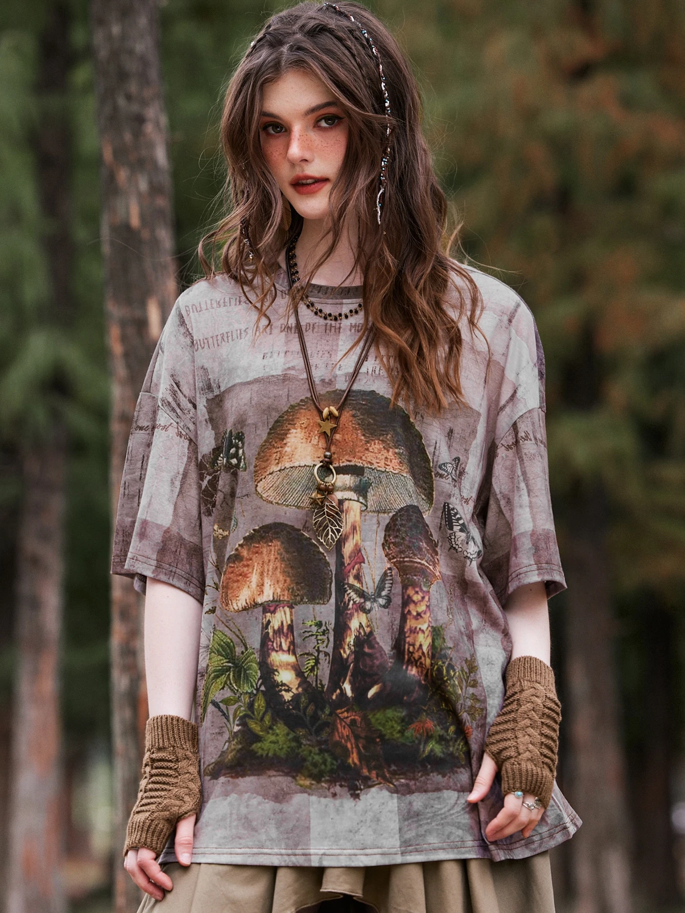 Fairycore Mushroom Graphic Drop Shoulder Tee