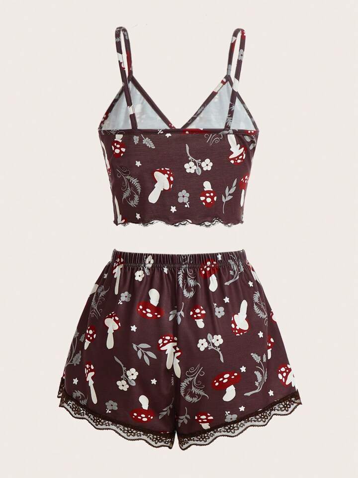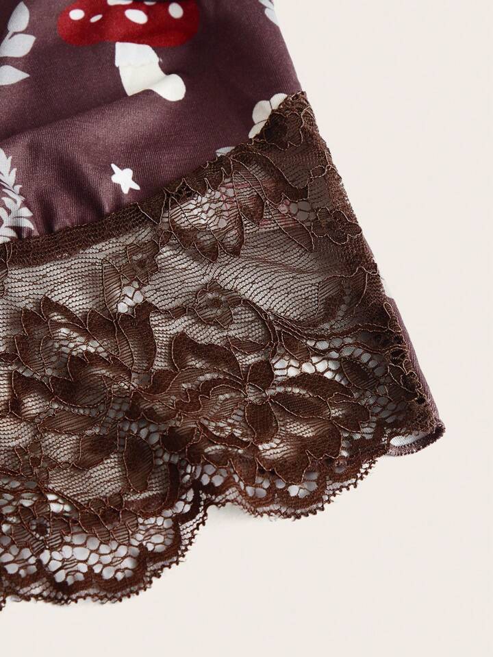 Fairycore Mushroom Print Contrast Lace PJ Set, School