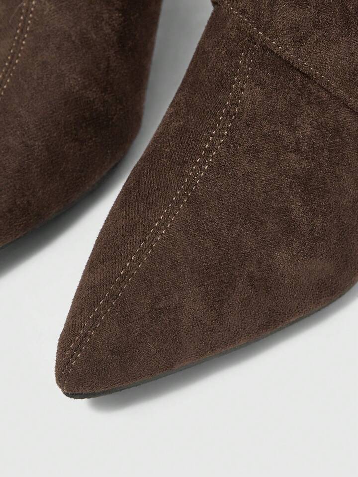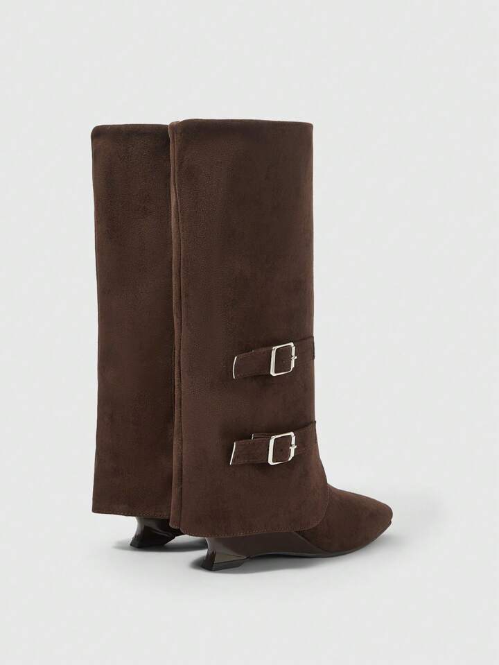 Fairycore New 2024 Autumn/Winter Pointed Toe Mid-Calf Buckle Strap Wedge Heel Mid Heel Boots, High Shaft Boots, Brown Velvet New Year Holiday