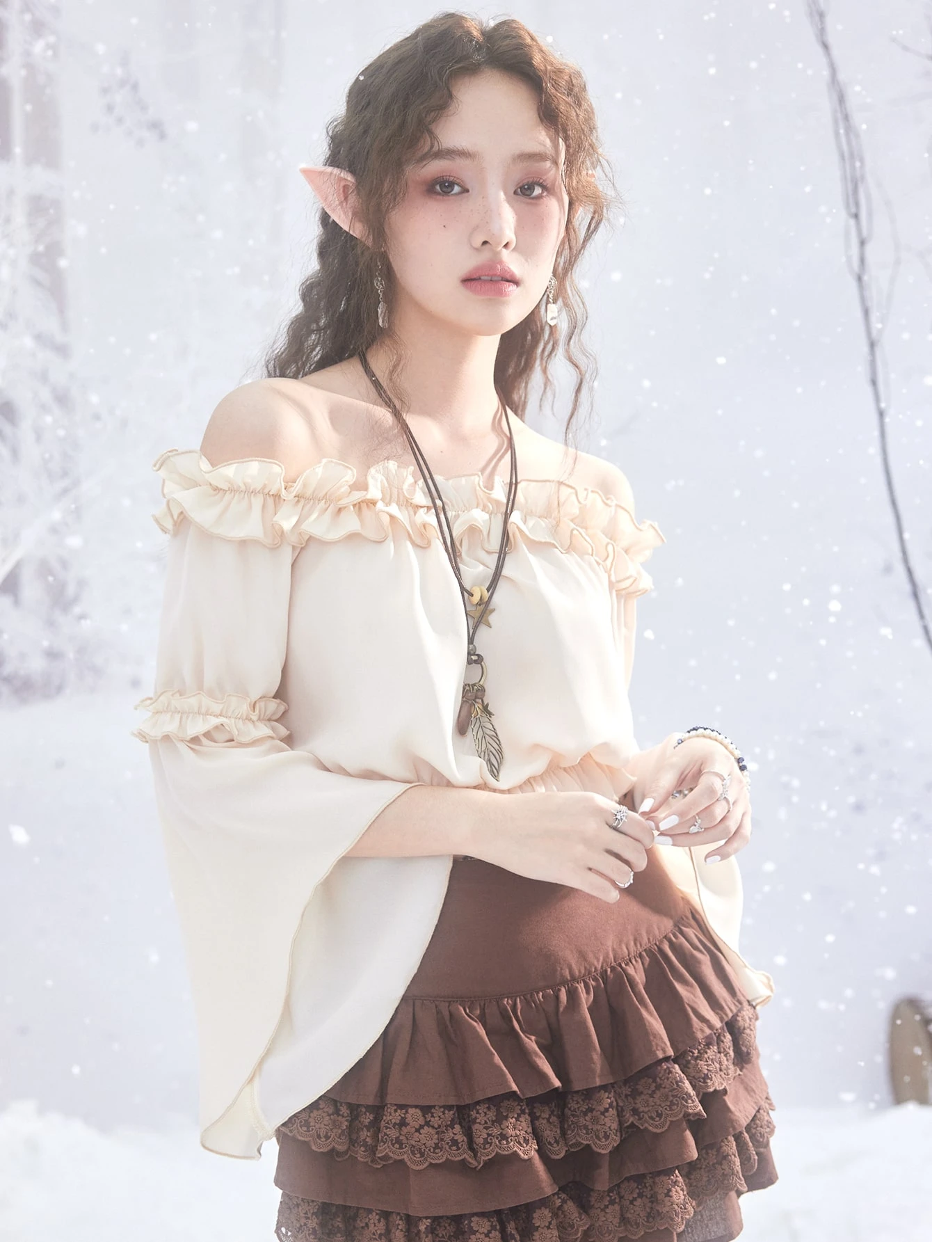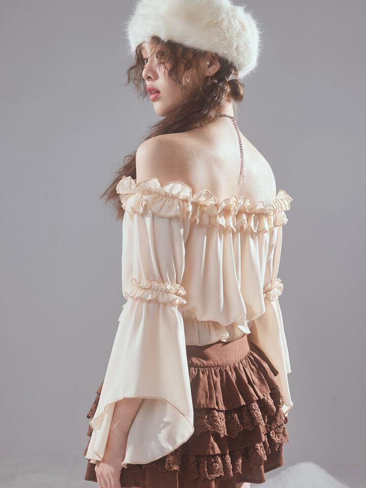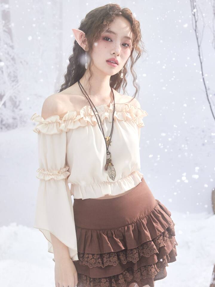 Fairycore Off Shoulder Ruffle Trim Blouse