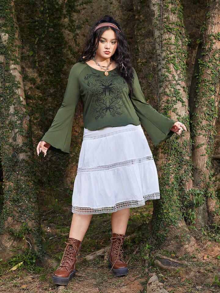 Fairycore Plus Butterfly Print Raglan Sleeve Tee