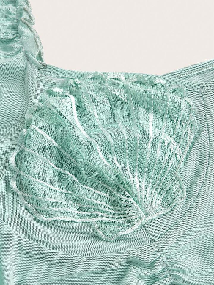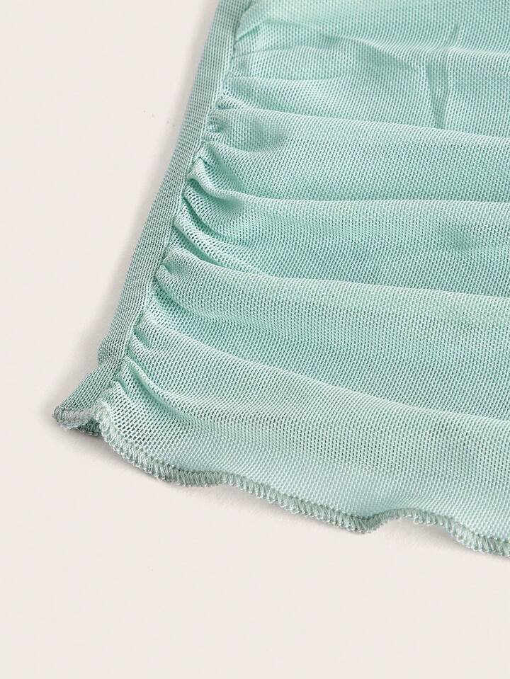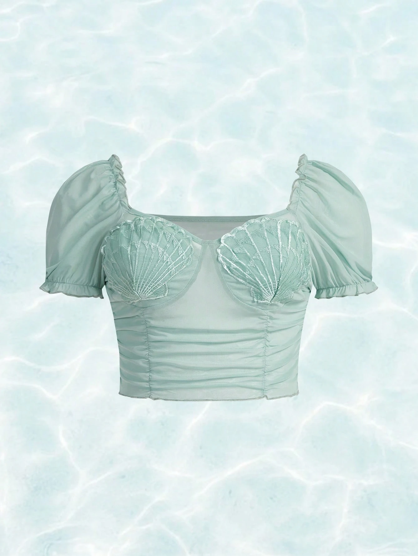 Fairycore Plus Contrast Lace Ruched Mesh Top