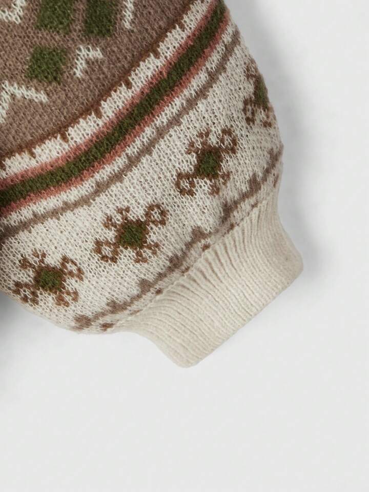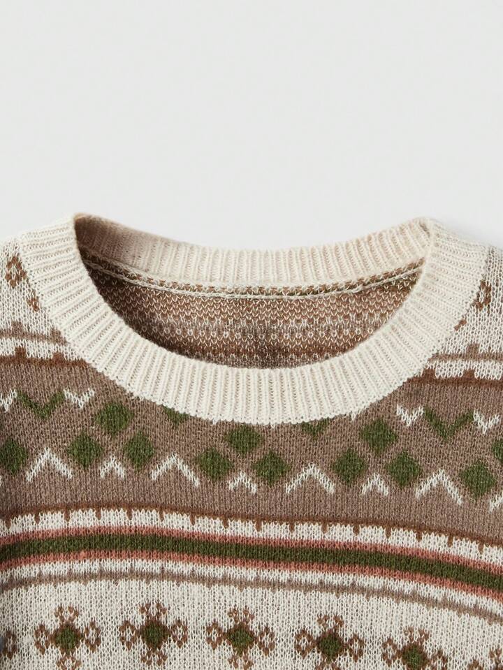 Fairycore Plus Size Geometric Printed Loose Fit Sweater With Crewneck, For Winter