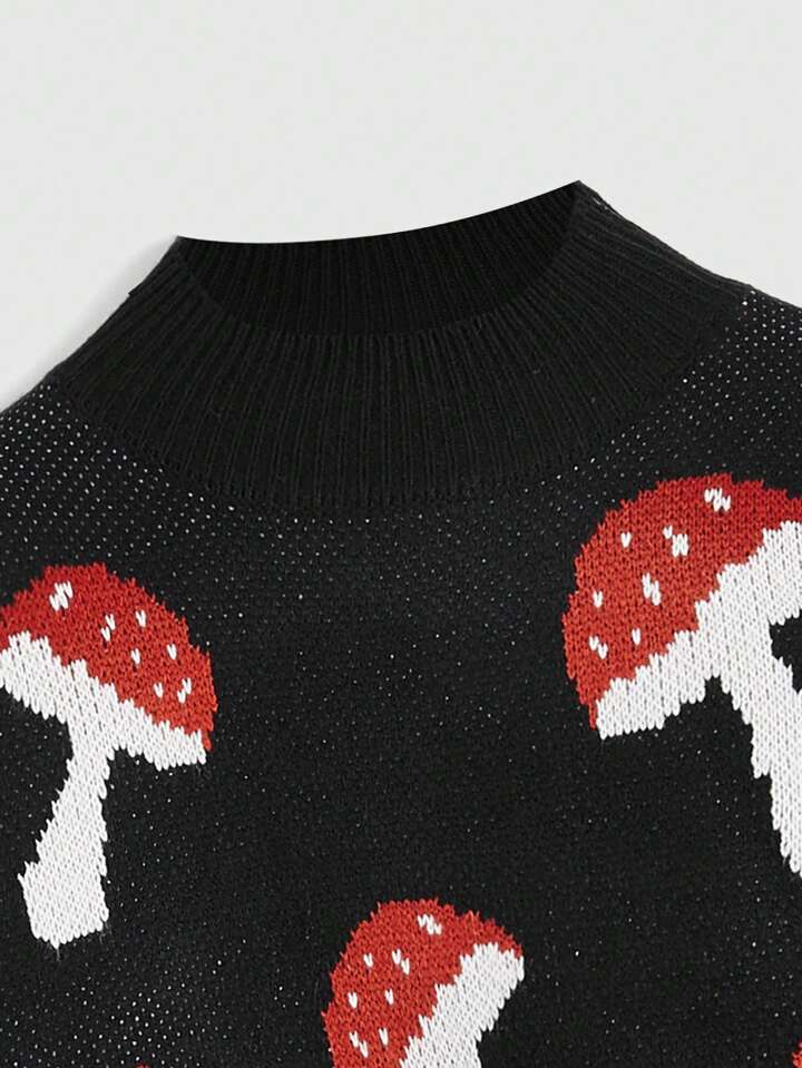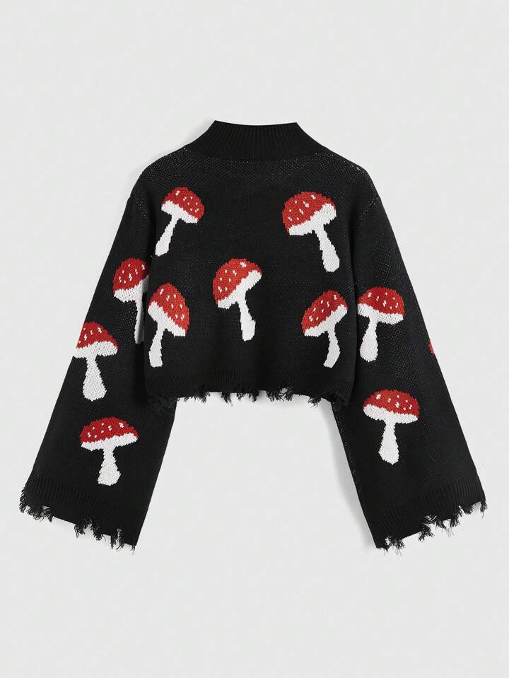Fairycore Plus Size Mushroom Pattern Distressed Sweater