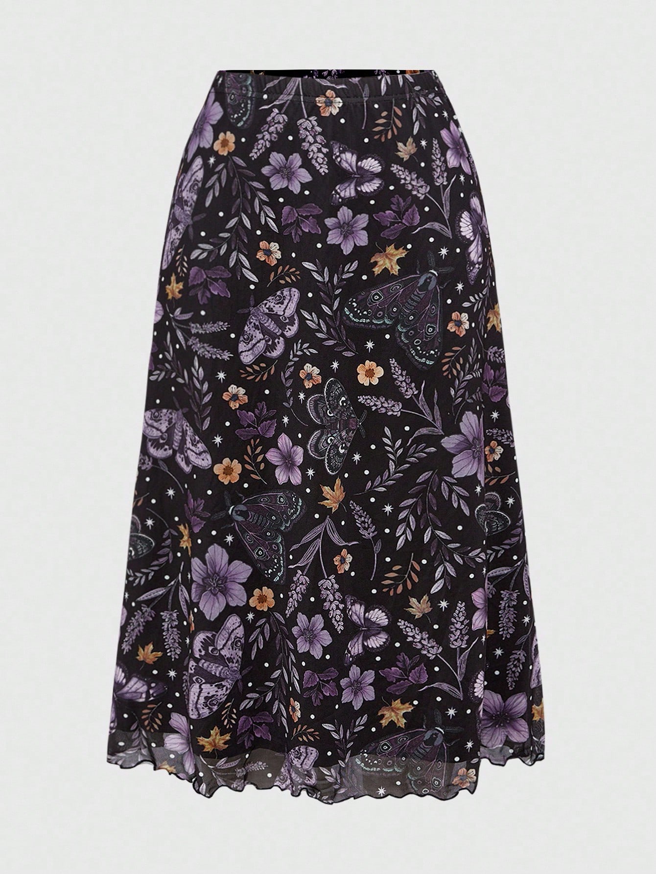 Fairycore Plus Size Women Retro Fairy Style Butterfly & Moth Print Versatile A-Line Skirt