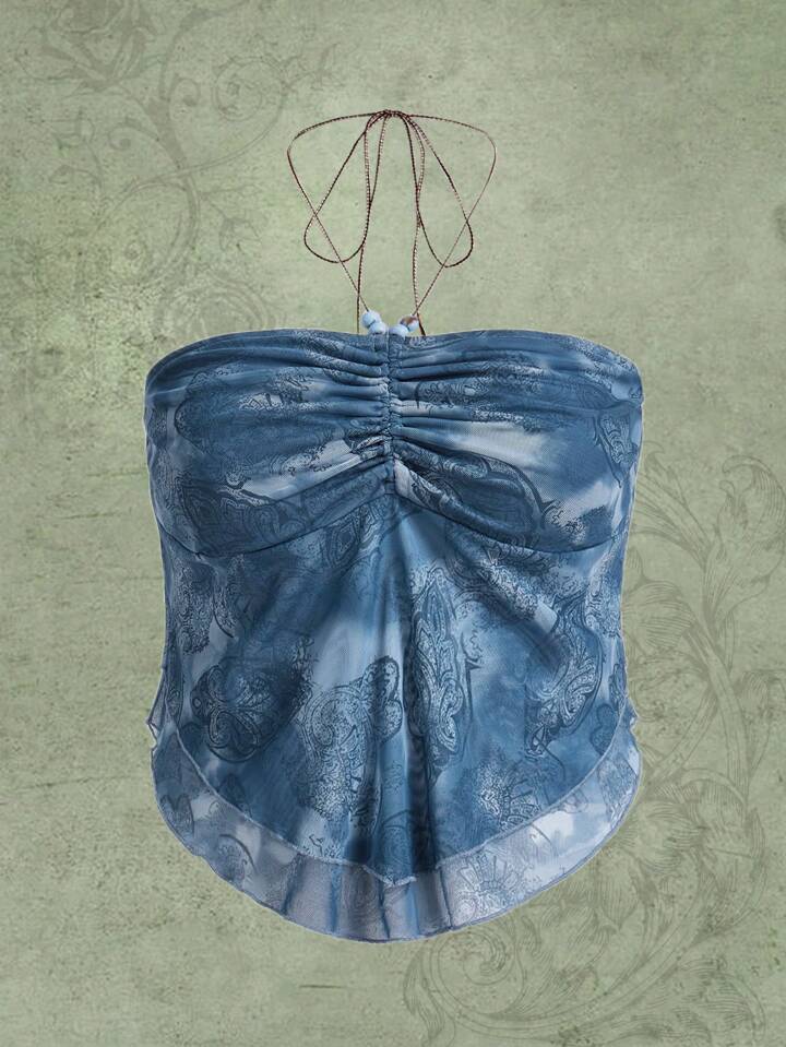 Fairycore Plus Tie Dye Paisley Print Ruched Halter Top