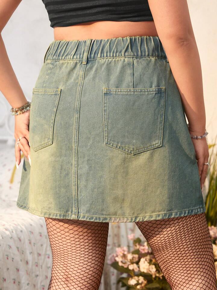 Fairycore Plus Washed Denim Skirt