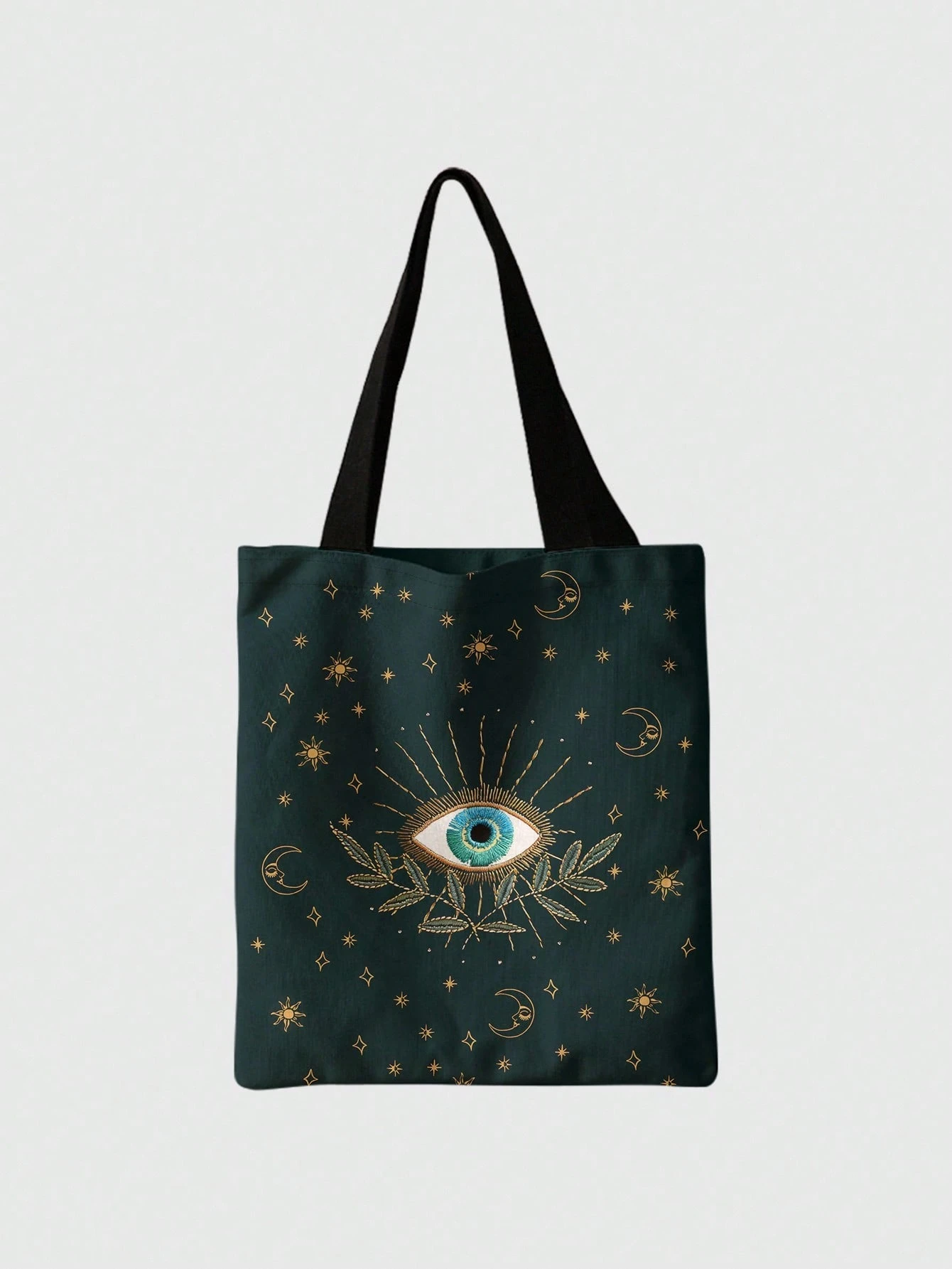 Fairycore Reusable Canvas Tote Bag With Allover Print Eye/Moon/Star Pattern, Shoulder Bag Design Suitable For Shopping