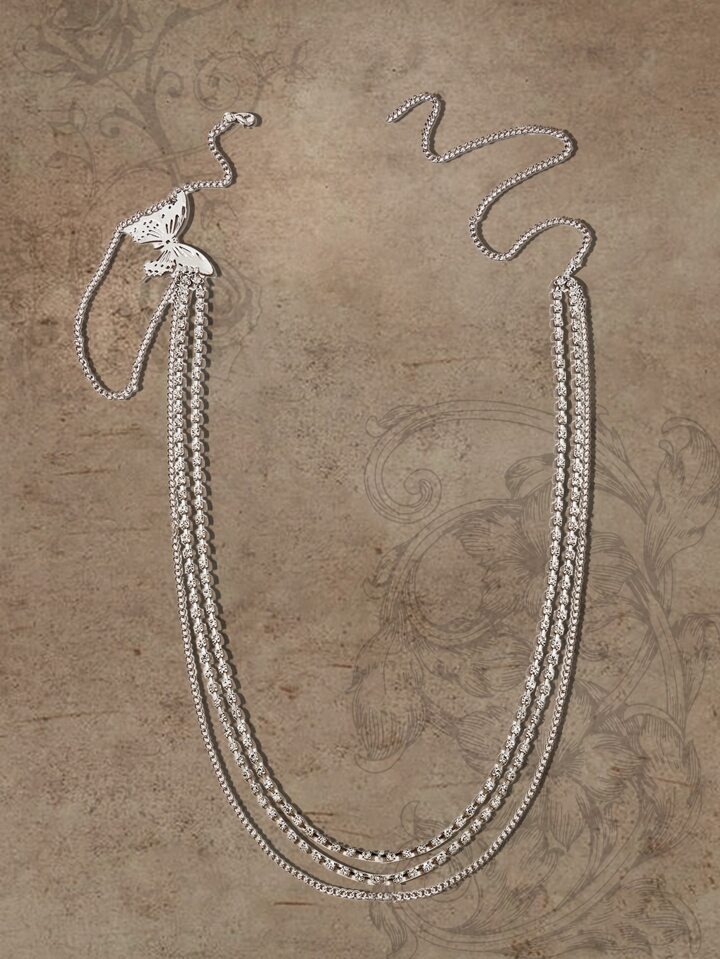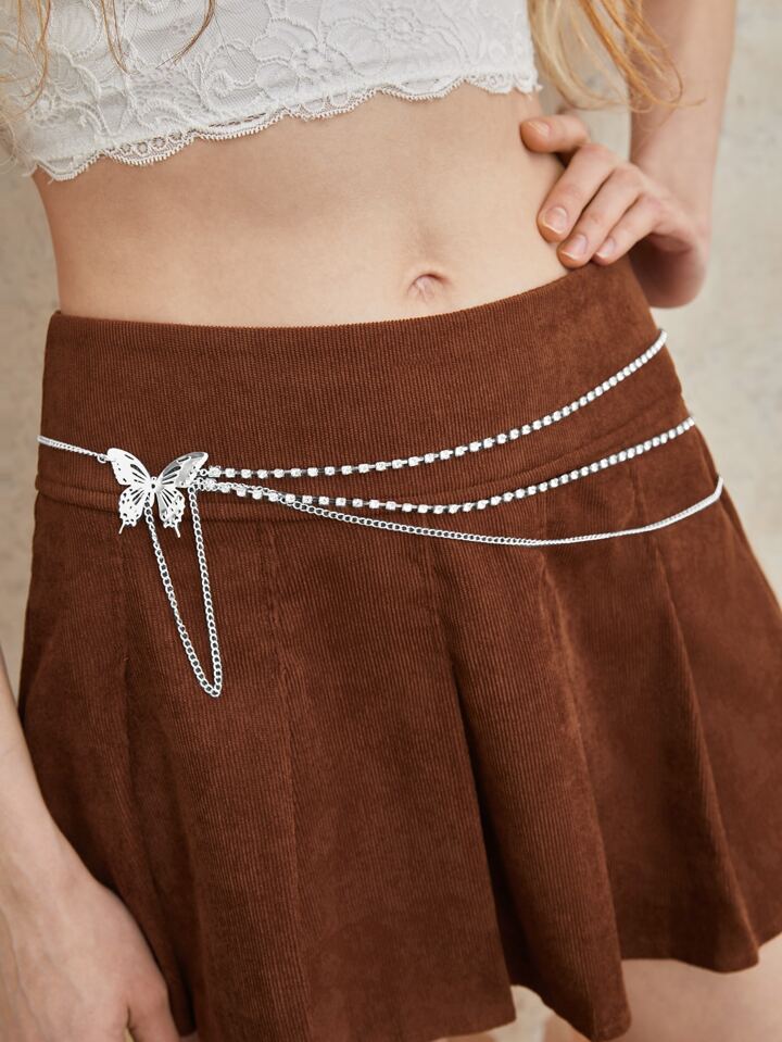 Fairycore Rhinestone & Butterfly Decor Chain Belt