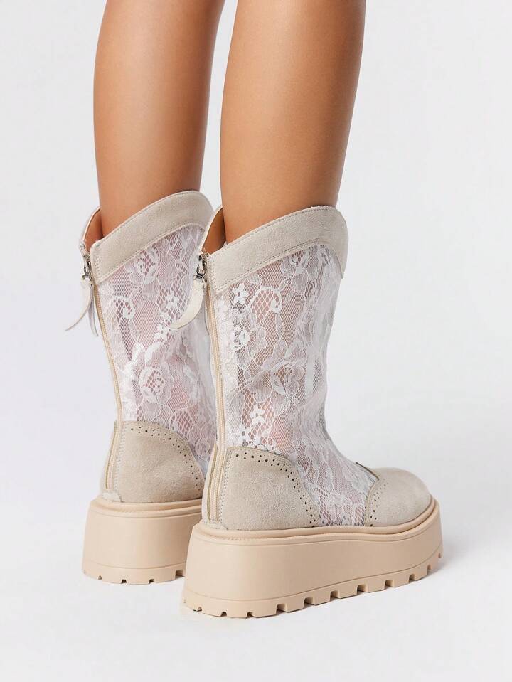 Fairycore Short Boots For Petite Women, Fashion Mesh Hollow Out Breathable Wedge Heels 7cm Increased Summer 2025 New