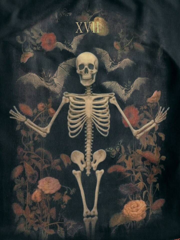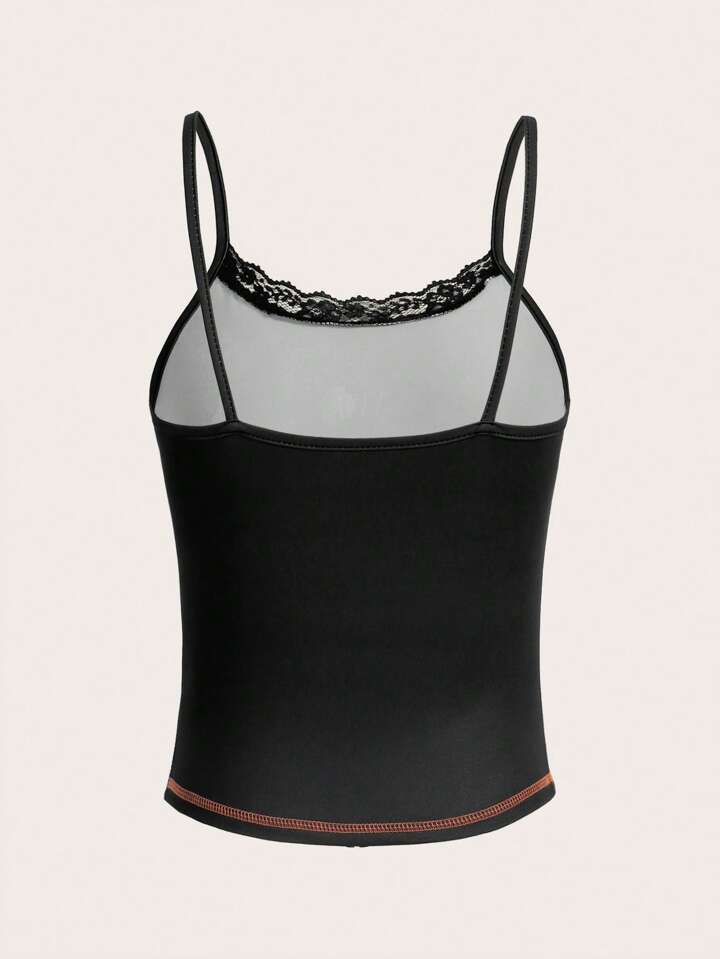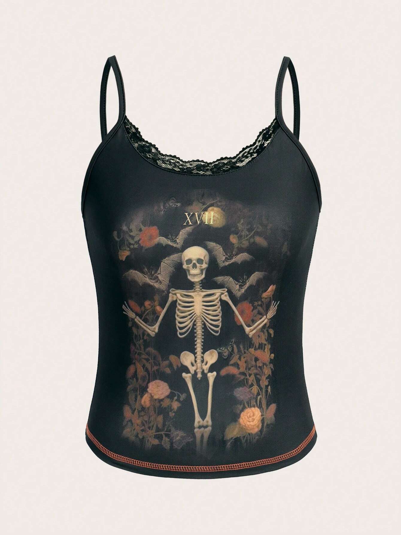 Fairycore Skull & Floral Print Contrast Lace Cami Top