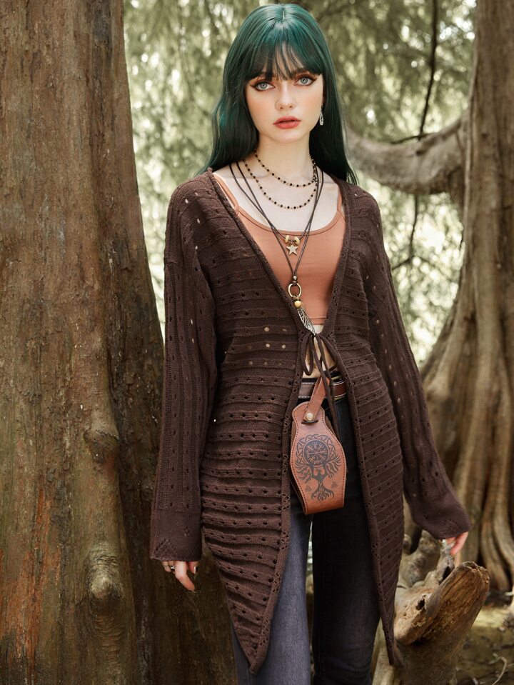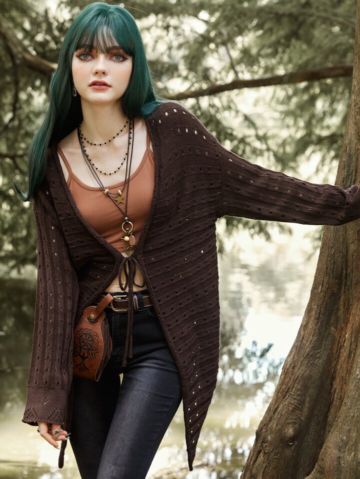 Fairycore Solid Hollow Out Tie Front Cardigan