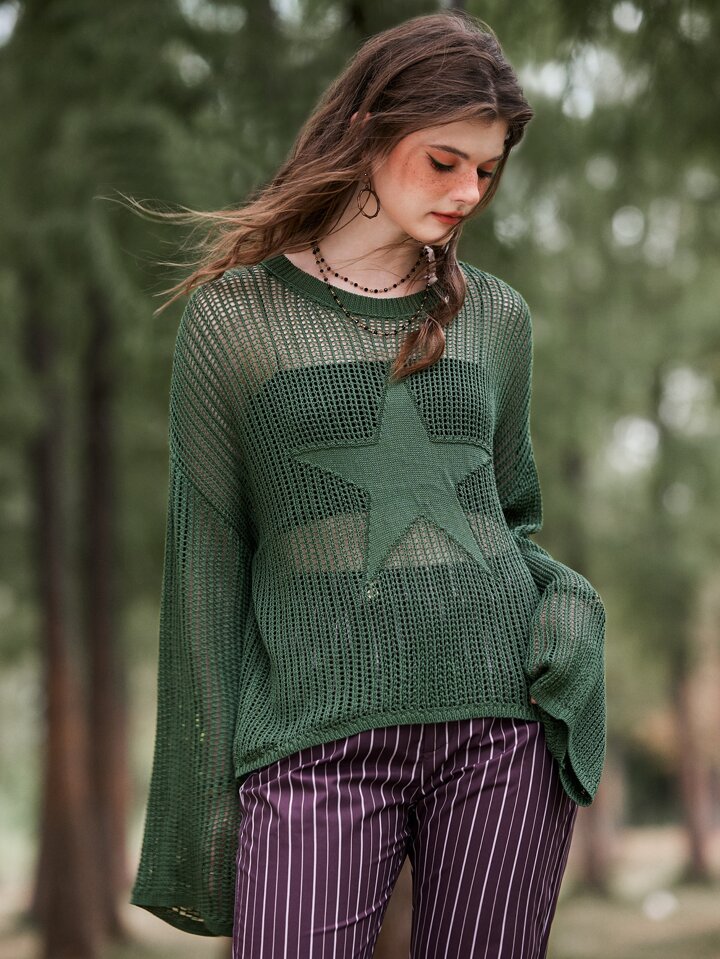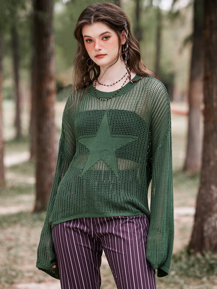 Fairycore Star Pattern Drop Shoulder Sweater