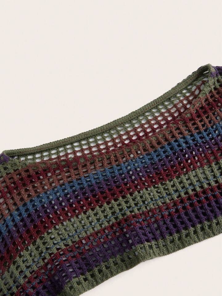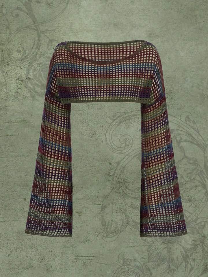 Fairycore Striped Hollow Out Trumpet Sleeve Crop Sweater