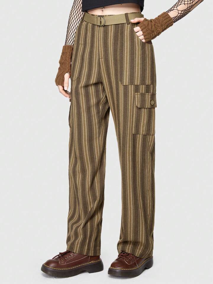 Fairycore Striped Print Flap Pocket Cargo Pants