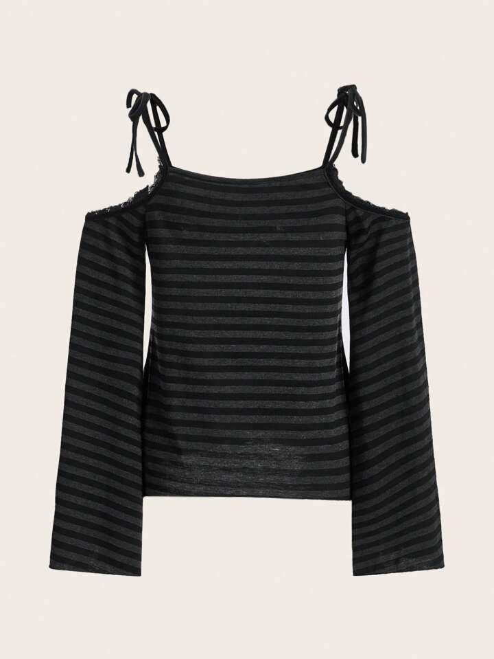 Fairycore Striped Tie Shoulder Tee