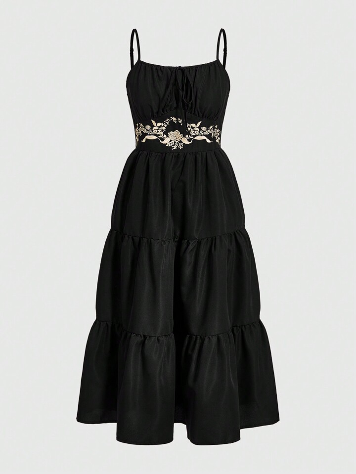 Fairycore Summer Casual Rose Floral Embroidered Strappy Dress
