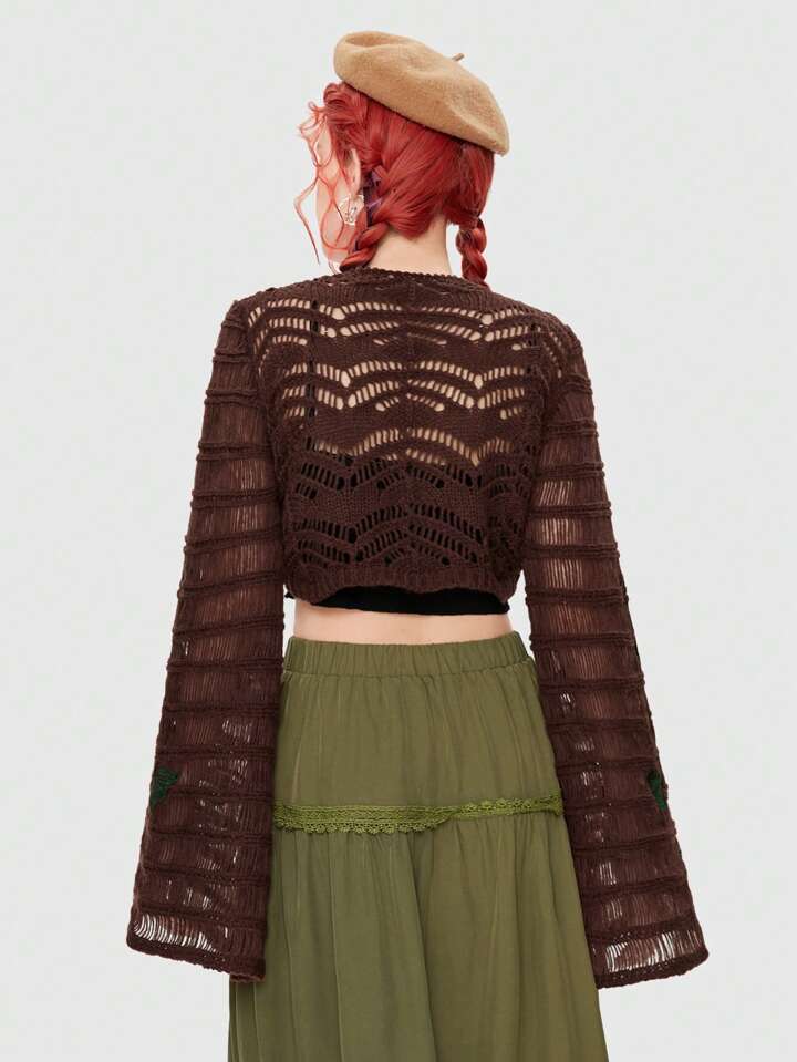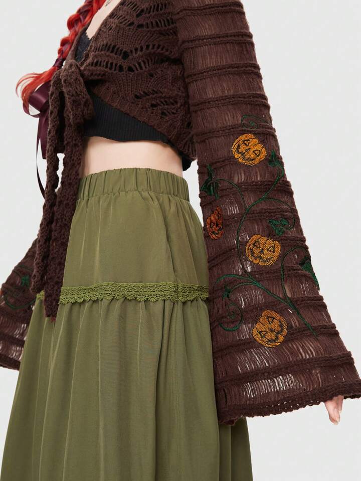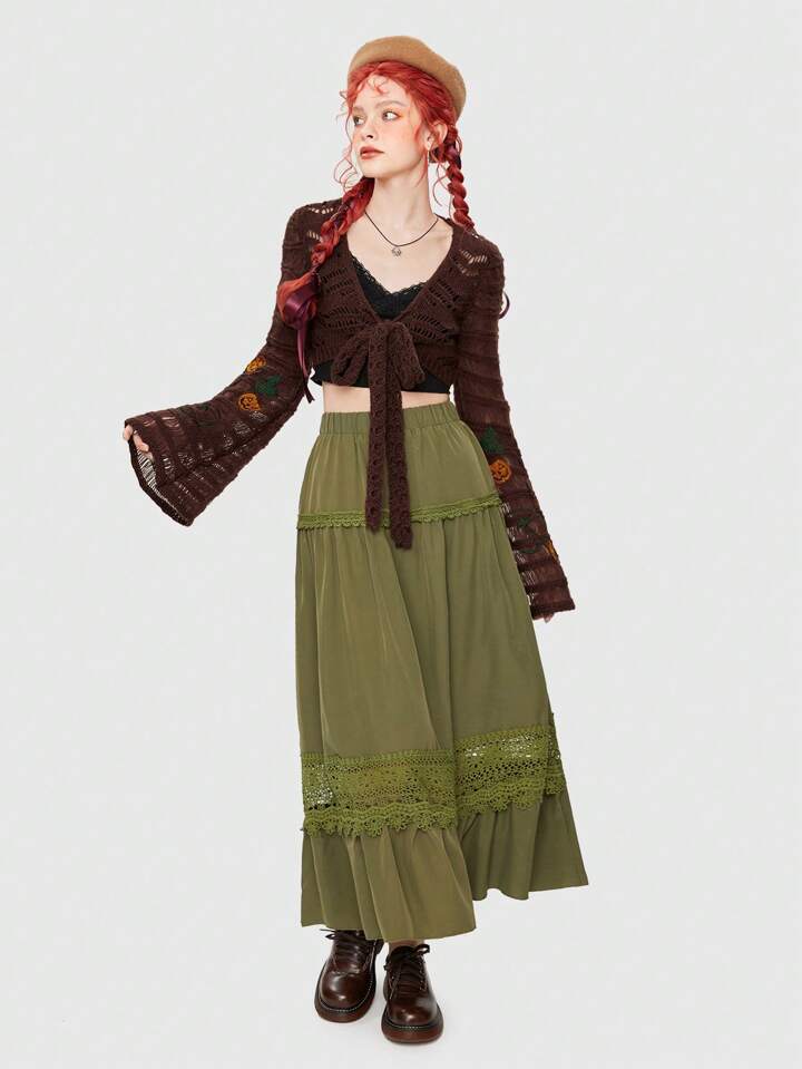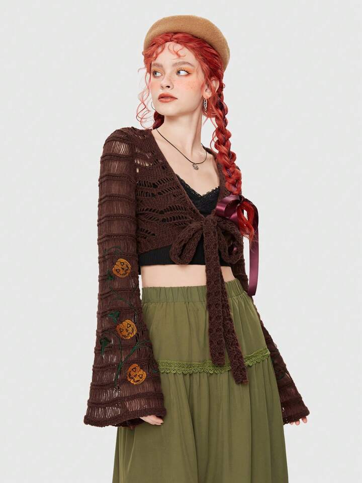 Fairycore Summer Halloween Pumpkin Tie Front Crochet Crop Cardigan