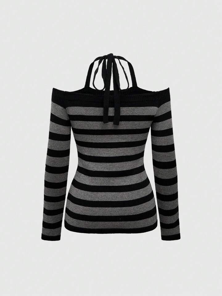 Fairycore Vintage Striped Off-The-Shoulder Sweater