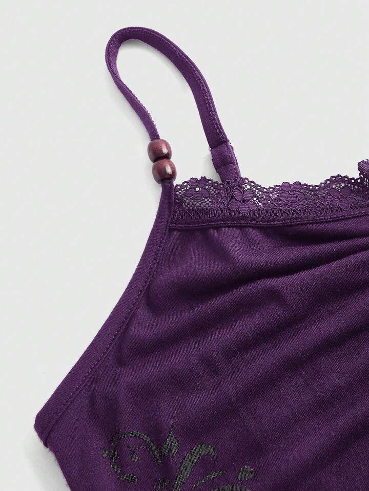 Fairycore Women Casual Retro Print Lace Trim Camisole