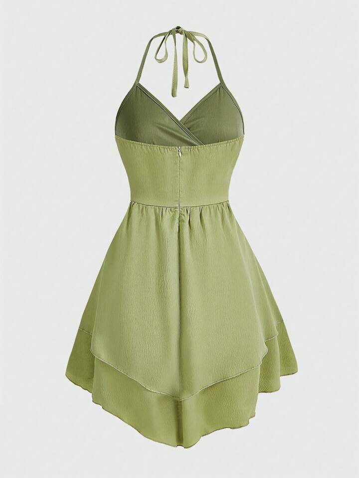 Fairycore Women'S Halter Neck Asymmetrical Hem Ruched Dress With Waist Ruffle