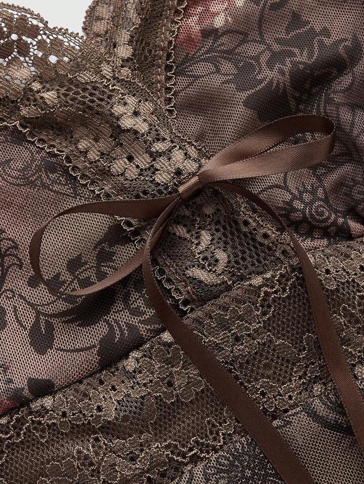 Fairycore Women'S Patchwork Lace Trimmed Cami Top With Paisley Pattern And Tassel Detail
