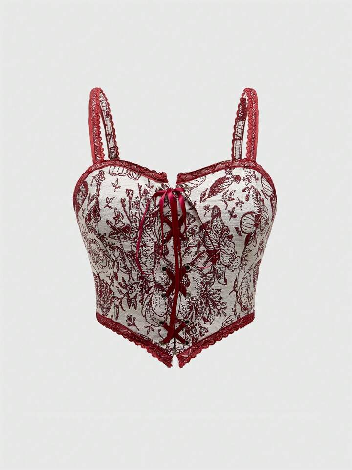 Fairycore Women's Elegant Butterfly Jacquard Lace Trim Cross Back Camisole With Tie Straps For Summer
