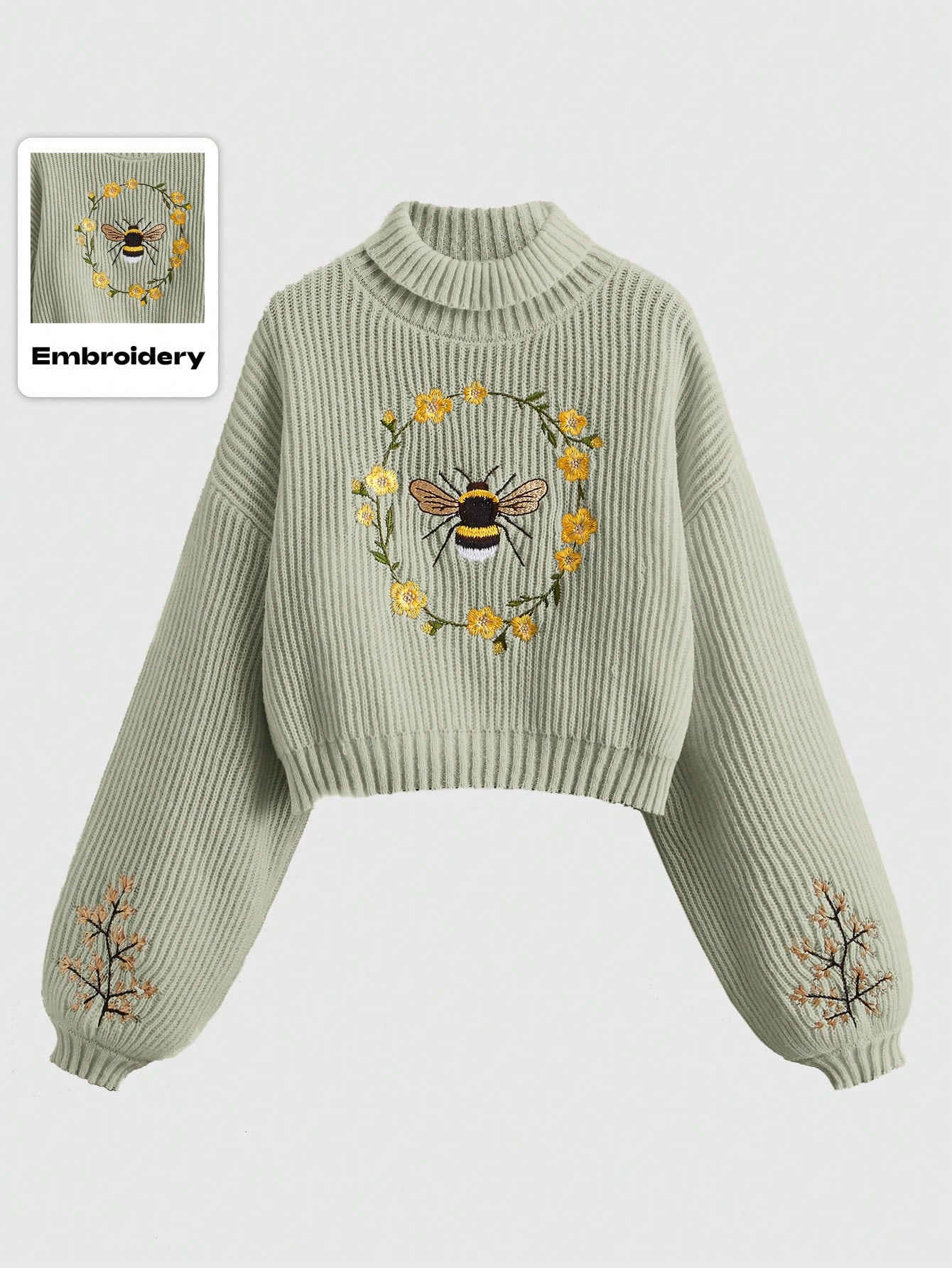 Fairycore Women's Embroidered Decor Long Sleeve Casual Sweater