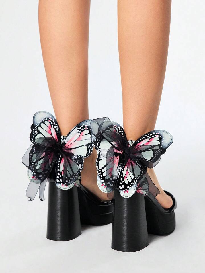 Fairycore Women's Fashion Elegant Bow Decor High Heel Sandals