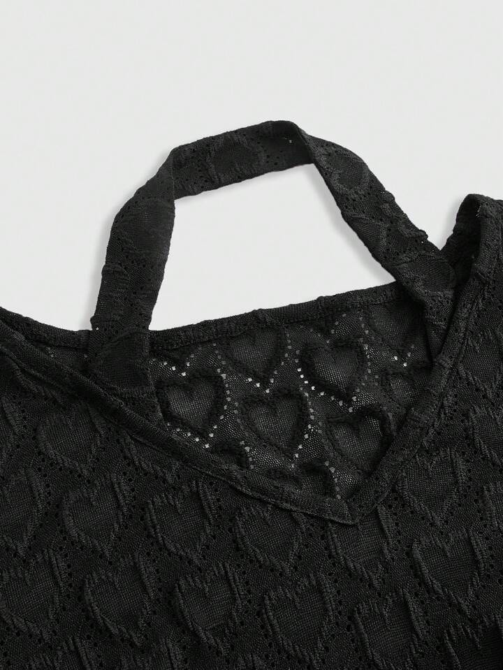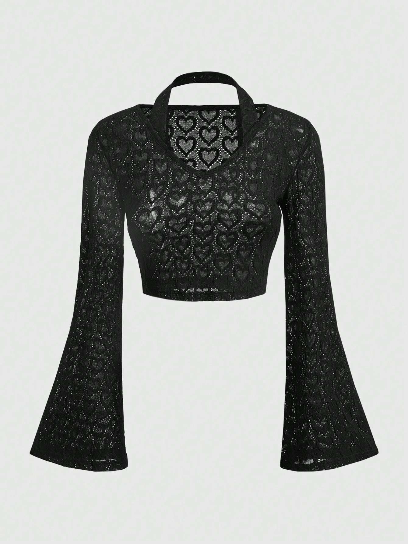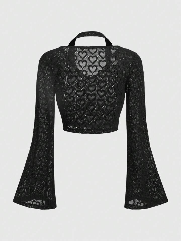 Fairycore Women's Heart Pattern Halterneck Flare Sleeve T-Shirt