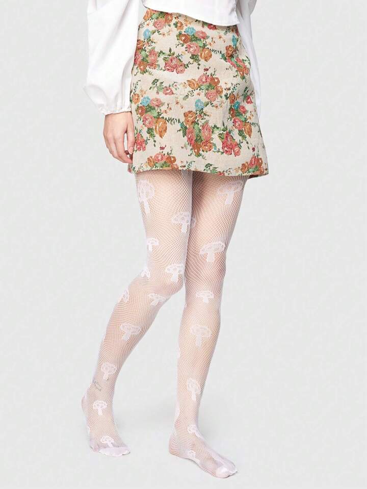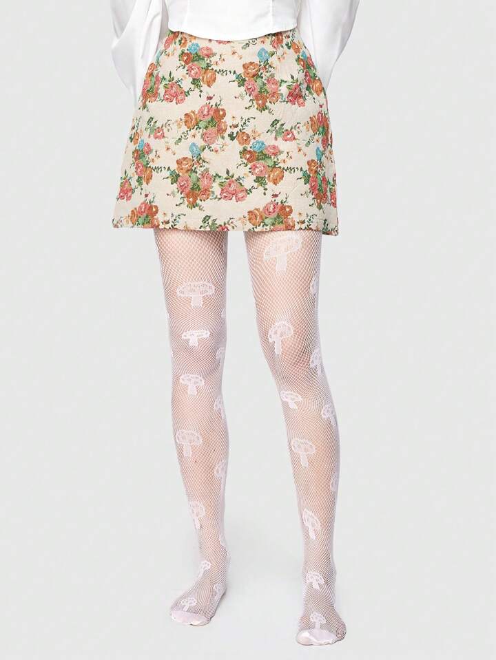 Fairycore Women's Mushroom Patterned Fishnet Tights