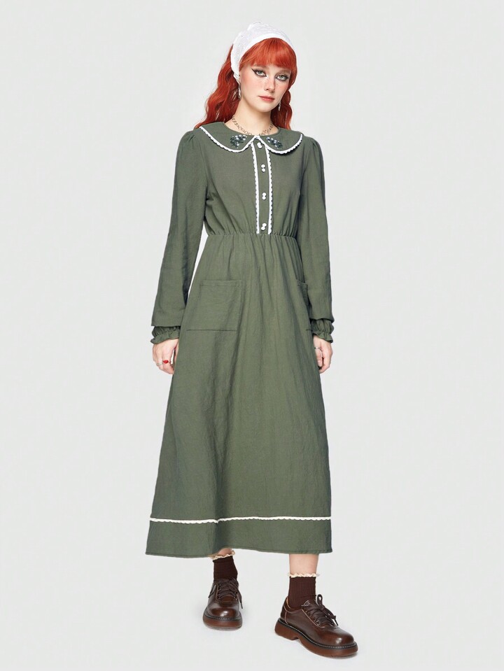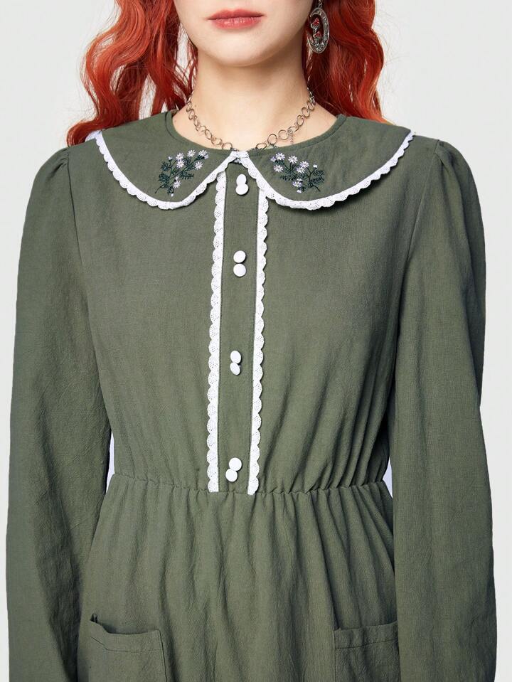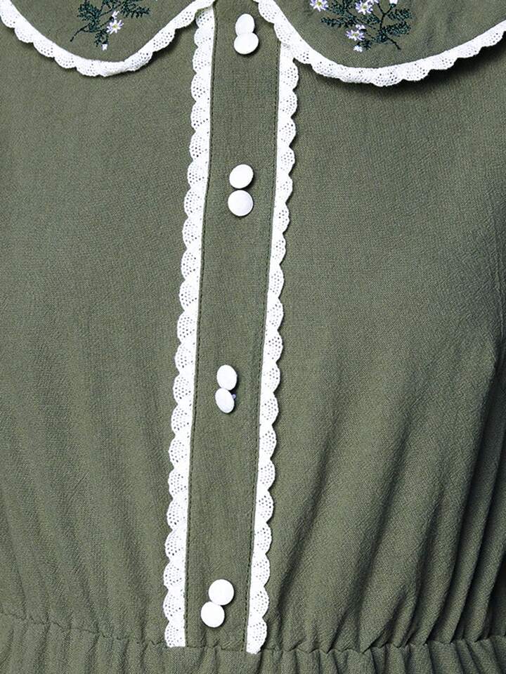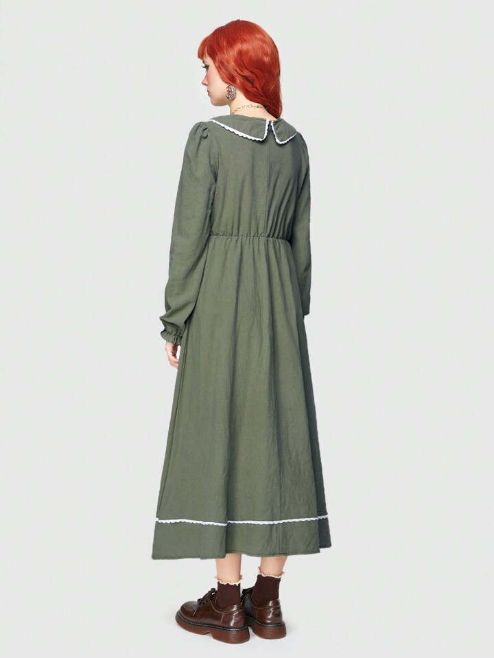 Fairycore Women's Peter Pan Collar Dress With Scallop Hemline