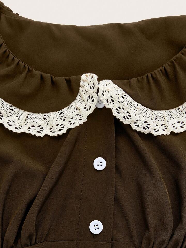 Fairycore Women's Peter Pan Collar Long Sleeve Elegant Palace Style Lace Trim Blouse
