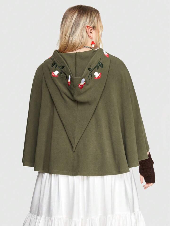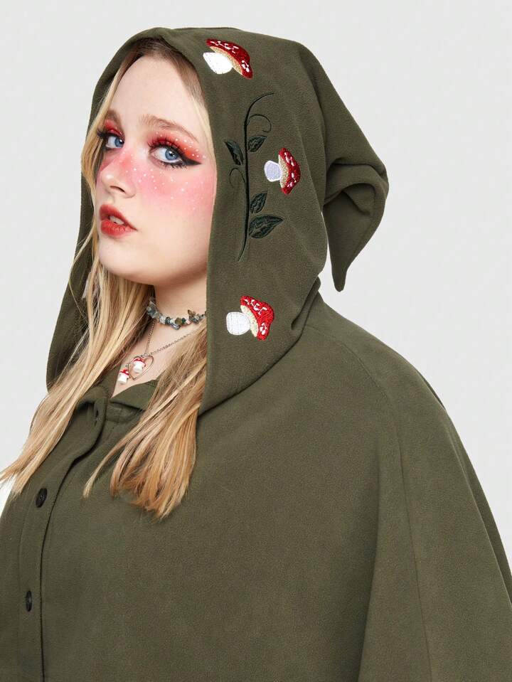 Fairycore Women's Plus Size Hooded Jacket With Mushroom Embroidery